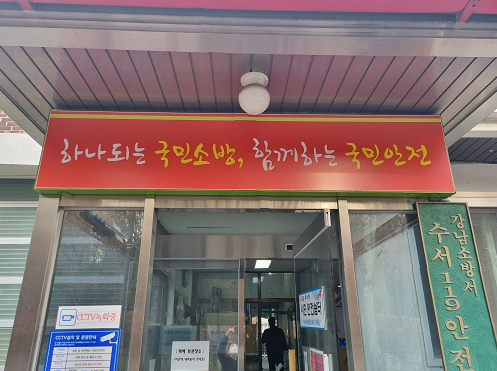 강남소방서 수서119안전센터에 쓰여 있는 Safe Korea 슬로건을 우리말 구호로 변경하였음을 알려드립니다.