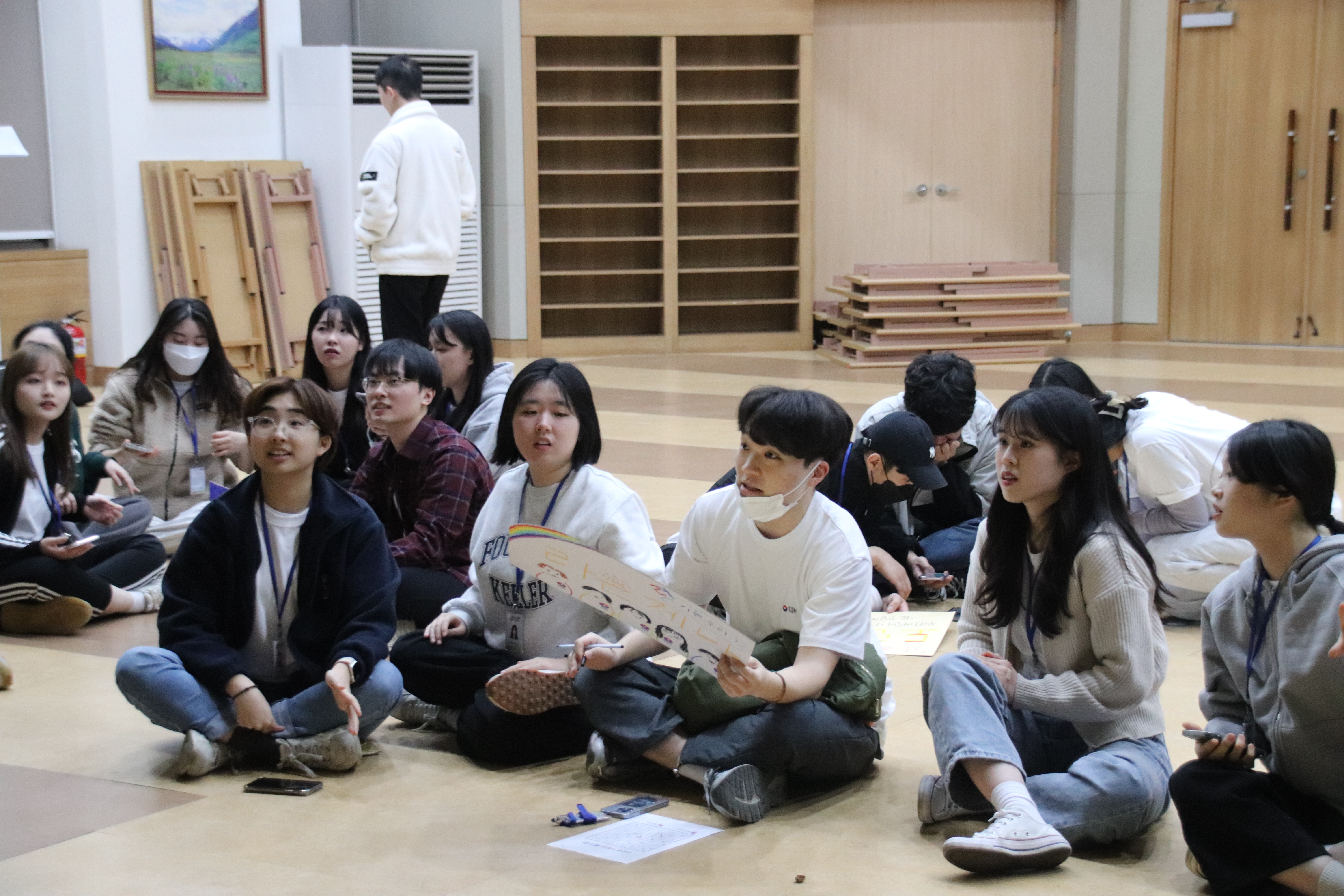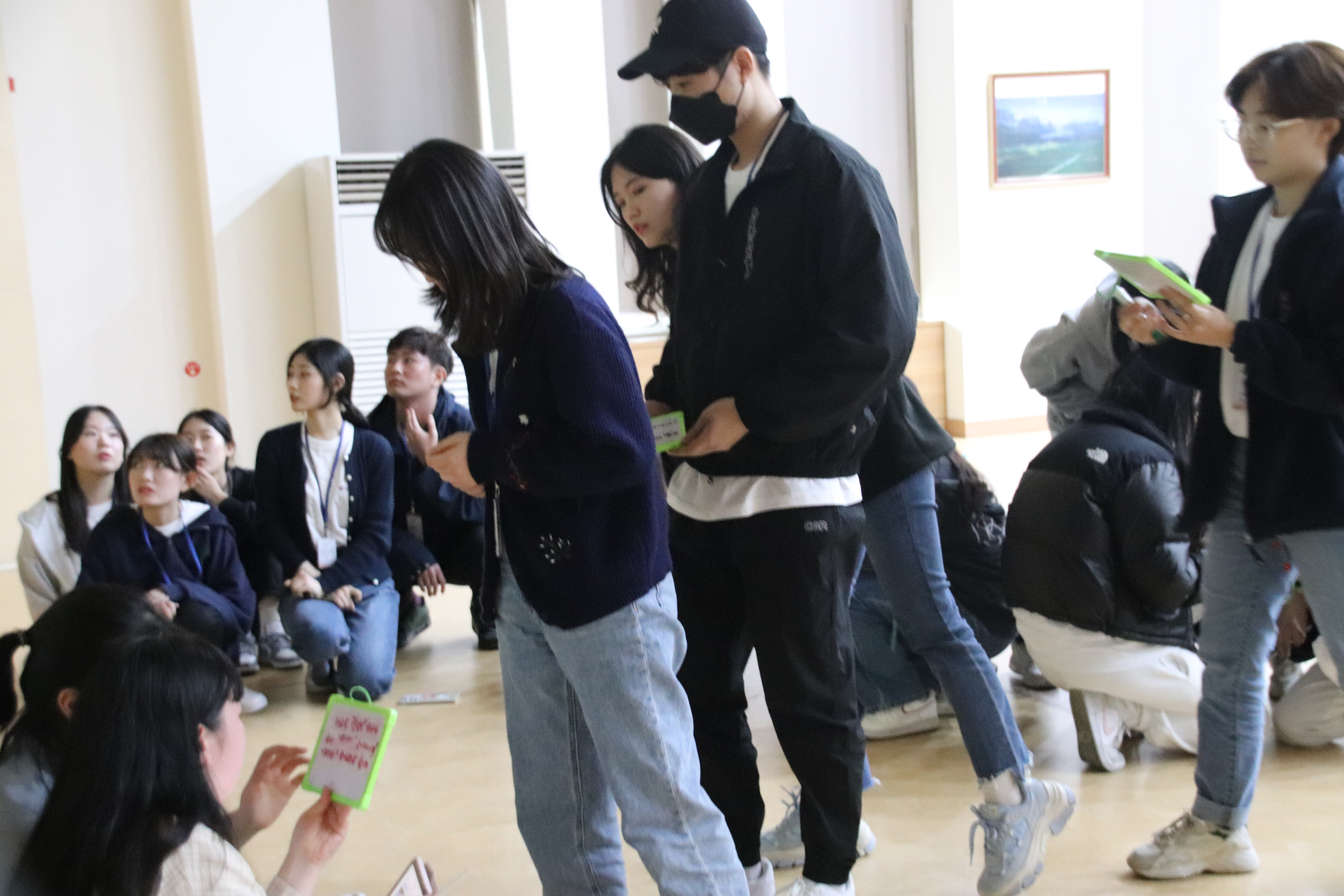 이렇게 서로 어색한 분위기가 조금씩 풀리는 중... 다음 순서는 모꼬지 기획단이 준비한 놀이 시간을 가졌습니다.