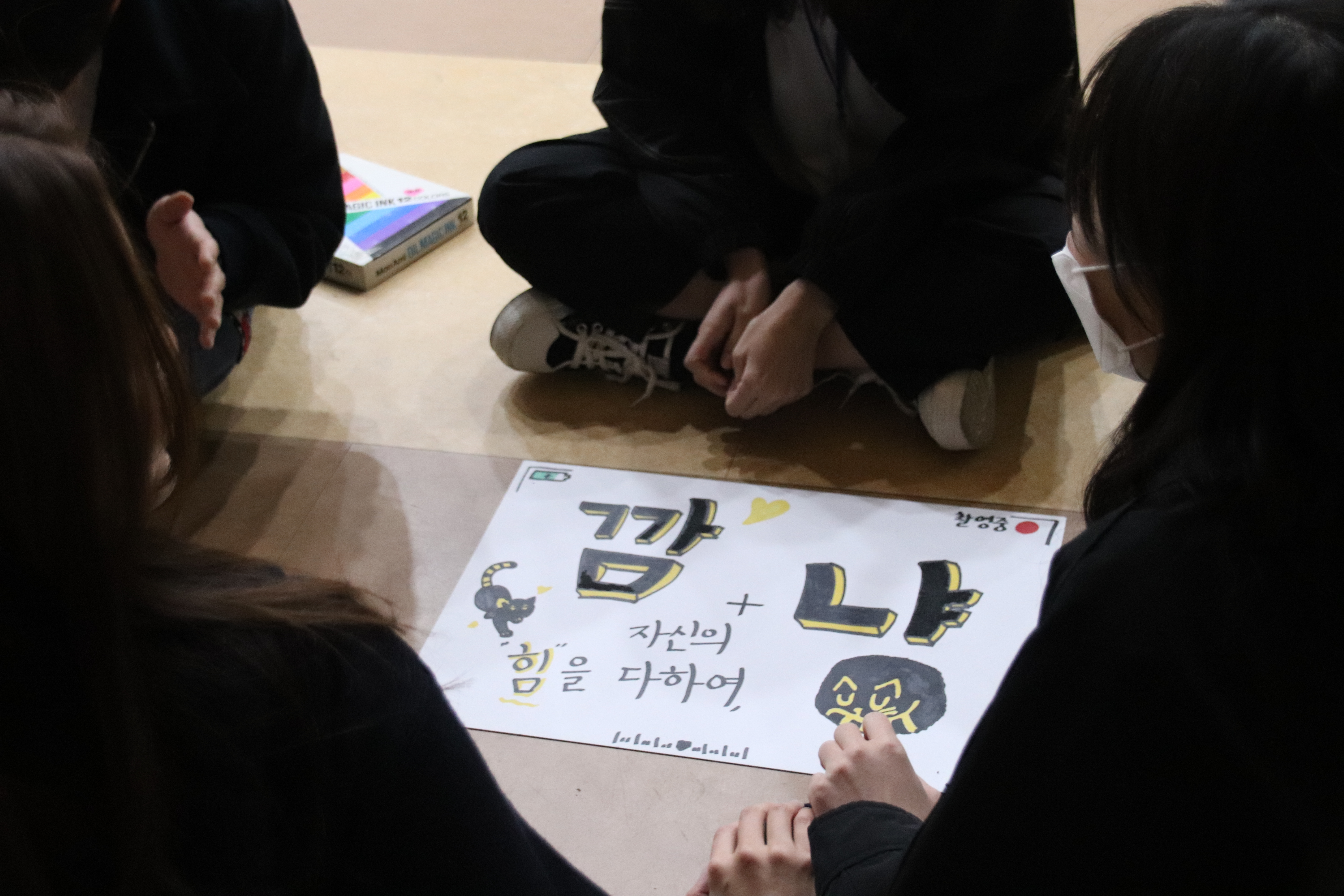 활동 소개가 끝난 후 모둠별로 모둠이름과 구호를 정하고 팻말을 만드는 시간을 가졌습니다. 가꿈이들 손재주가 장난이 아닌데요? :)