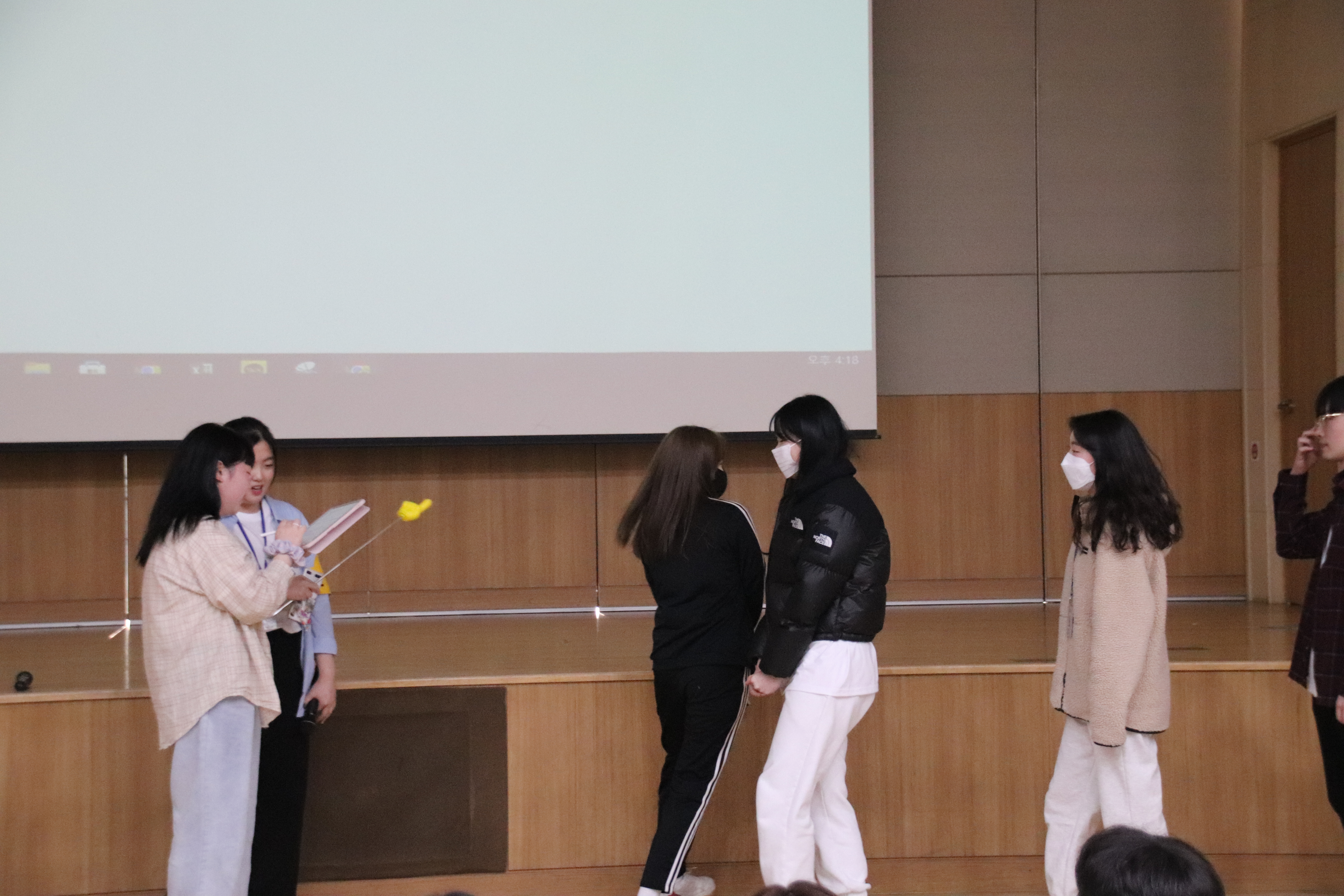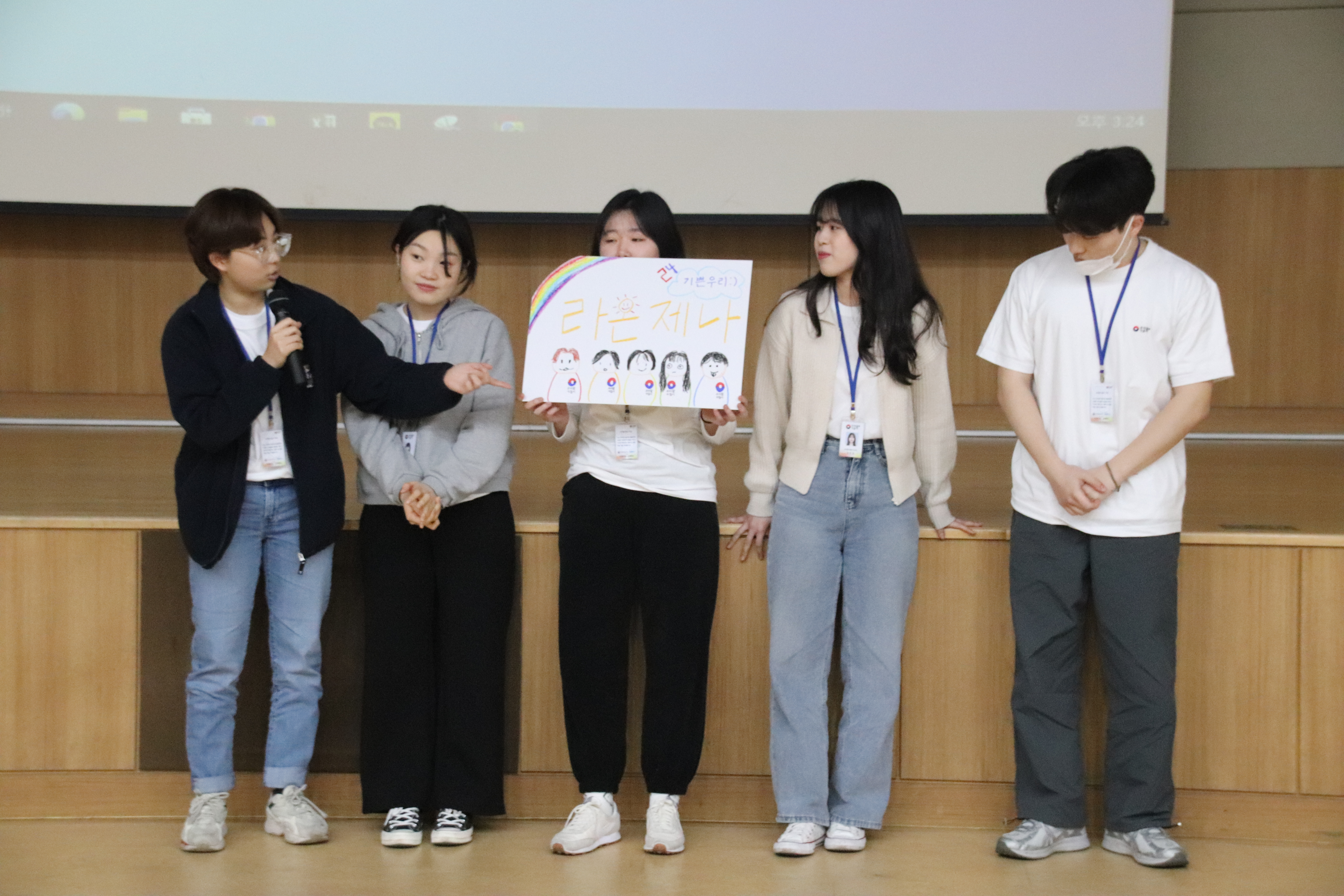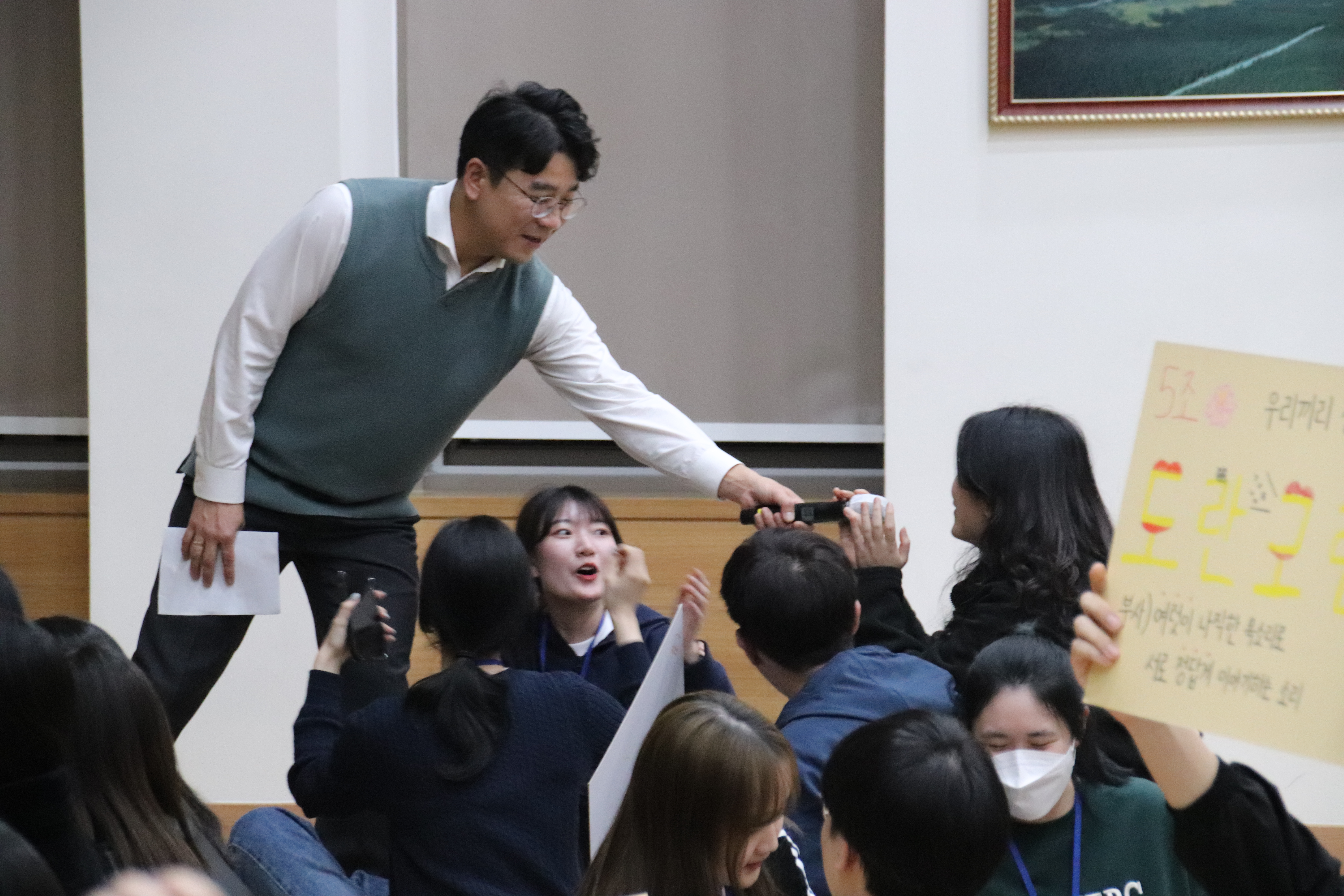 저녁을 먹고 난 후에는 배은한 사회자가 모둠원끼리 친해질 수 있게 놀이 활동을 맡아 진행했습니다.