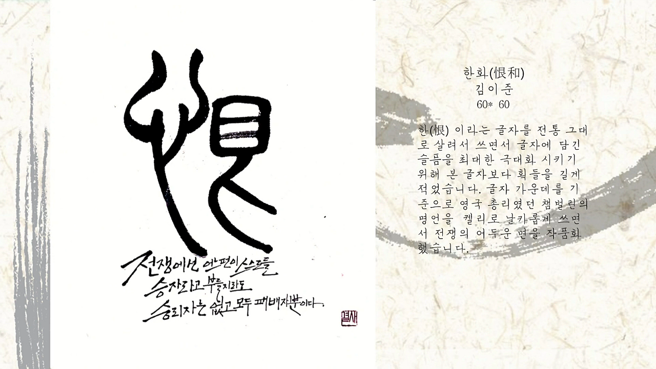 서예전공 학생들은 매년 학교 안에 있는 소성박물관의 전시 프로그램이나 졸업 전시에서 서예 작품들을 전시한다. 작년 1학기의 경우, 소성박물관 전시 프로그램 ‘展See하자!’를 통해 서예전공과 한국화전공 학생들이 ‘한(恨), 온(溫), 애(哀) - 감정을 따라 쓰는 것’이라는 온라인 전시를 선보였다. 김이준 학생의 ‘한화(恨和)’는 ‘한(恨)’ 글자를 전통 그대로 살려 쓰면서 본 글자보다 획을 길게 적어 전쟁의 어두운 면을 담은 작품이다. 김상아 학생의 ‘평화’는 힘 있는 말이라고 생각해 단순하게 먹으로만 표현하여 단단한 느낌을 주었다고 한다. 글씨에 감정을 담는다는 것이 어떤 것인지 보여주는 전시다.