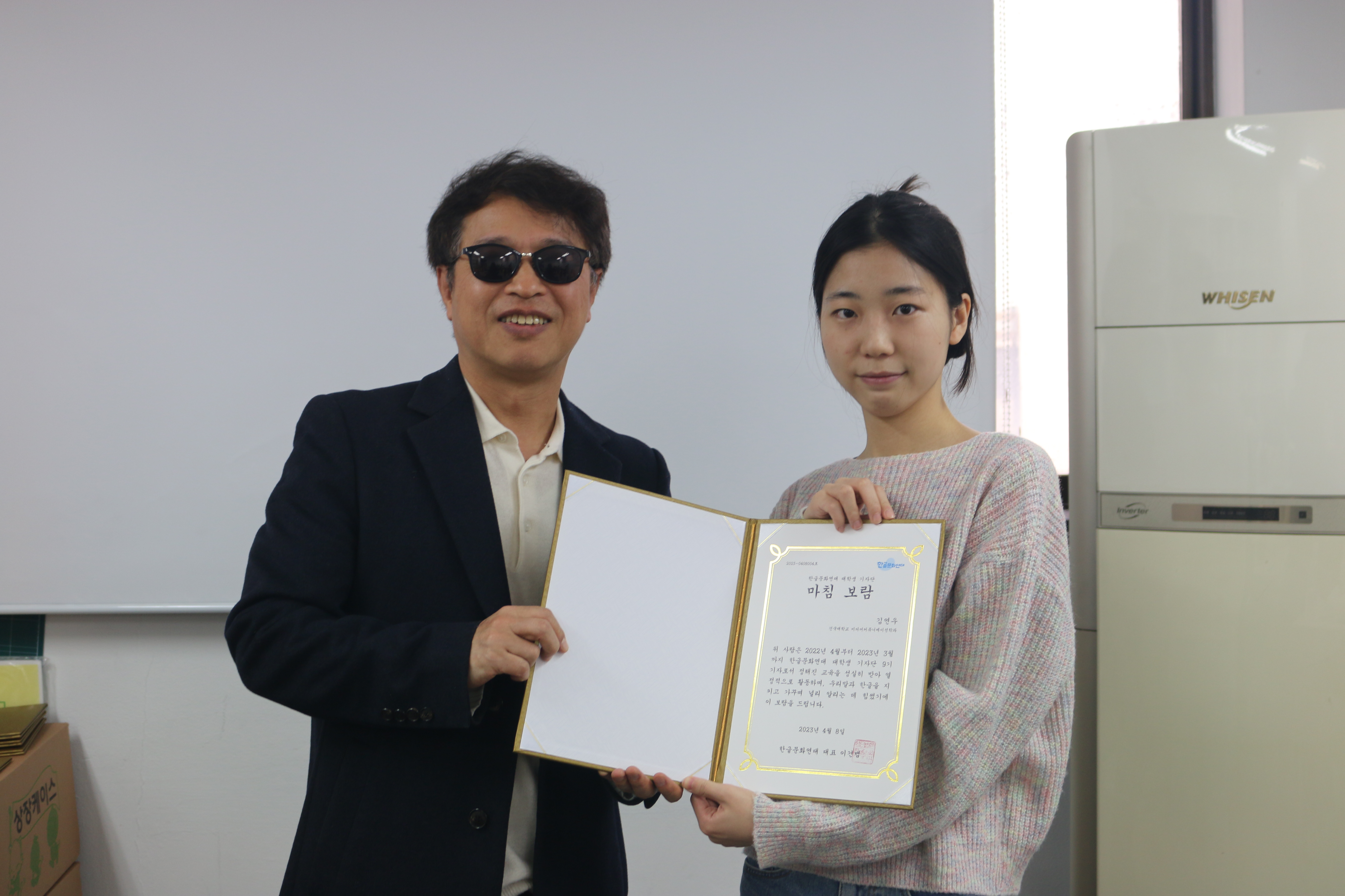 버금 우수 기자상을 받은 김민 기자는 "여러번 수정을 거치며 기사 작성 실력이 많이 늘었다. 특히나 대학생 신분으로 알기 어려운 정보를 접할 수 있어 인터뷰 기회가 많다. 재밌는 기사를 작성할 기회가 많이 있으니 잘 활용하길 바란다"라며, 한글문화연대 대학생 기자단만의 특색을 알려주기도 했습니다.