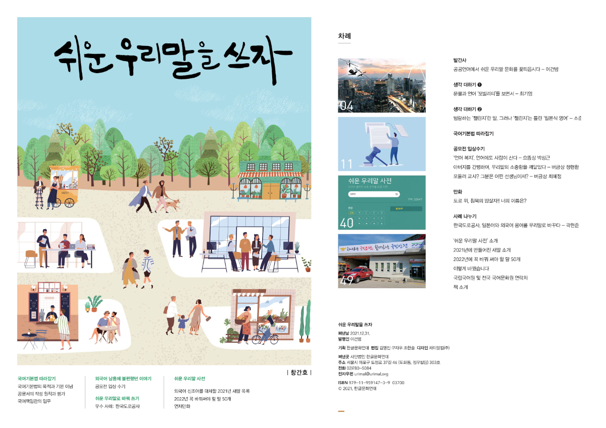 공공언어에서 쉬운 우리말 문화를 꽃피우기 위해, 「쉬운 우리말을 쓰자」 잡지를 계절마다 발행합니다.