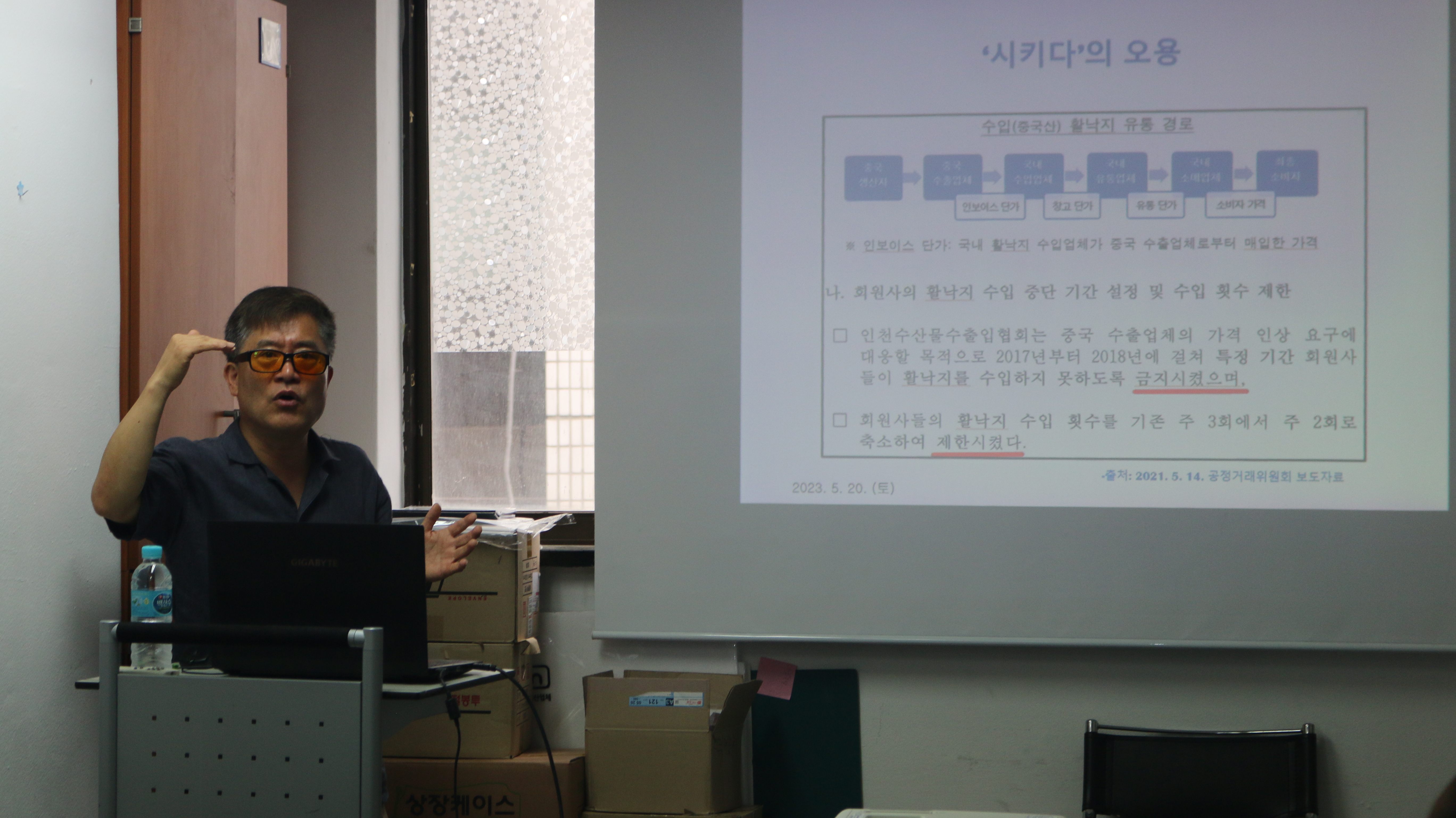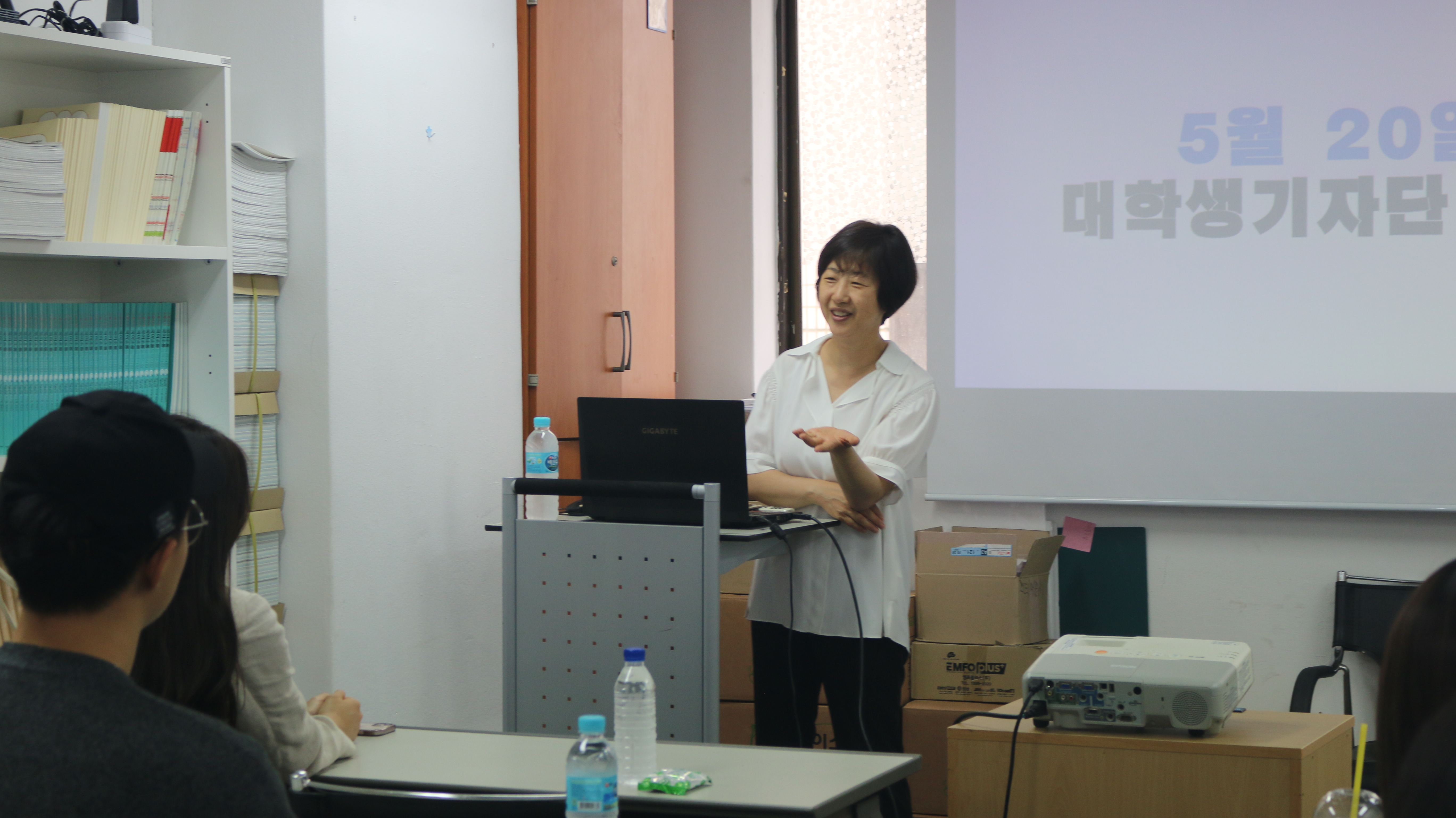 본격 강의에 앞서 김명진 부대표와 대학생 기자단은 지난 5월 13일에 활동한 세종 나신 날 행사와 한글 박물관 견학에 관한 이야기로 꽃을 피웠습니다.