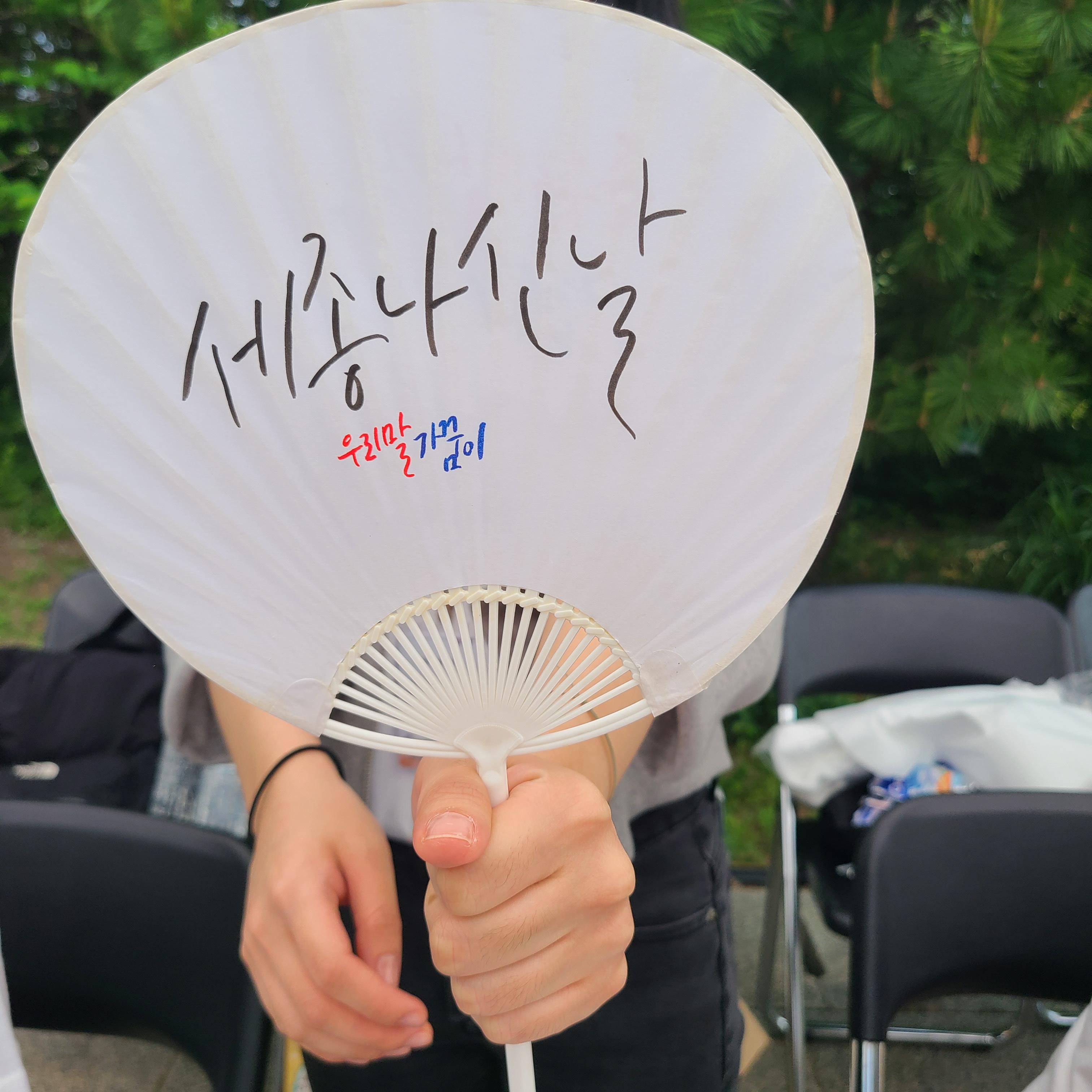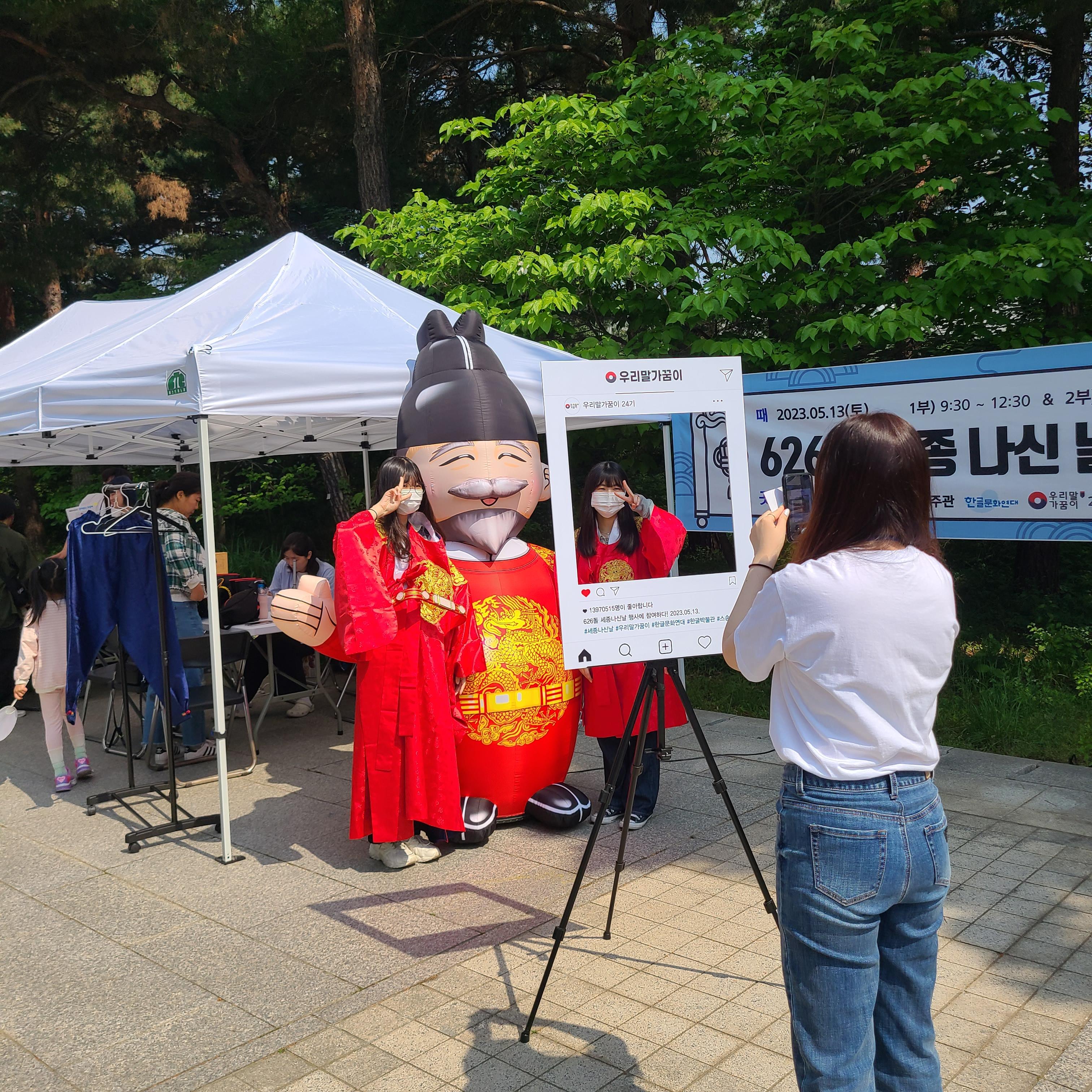 5월 15일이 무슨 날인지 아시나요? 네 스승의 날로 다들 알고 계시죠..! 이날은 겨레의 스승 '세종대왕'이 탄생한 날이라서 스승의 날로 지정되었습니다. 이를 기념하기 위해 우리말가꿈이는 626돌 세종 나신 날 시민 참여 행사를 준비했고 2023년 5월 13일 토요일 아침, 용산구에 있는 국립한글박물관 앞 광장은 천막과 책상, 의자가 설치되었습니다.