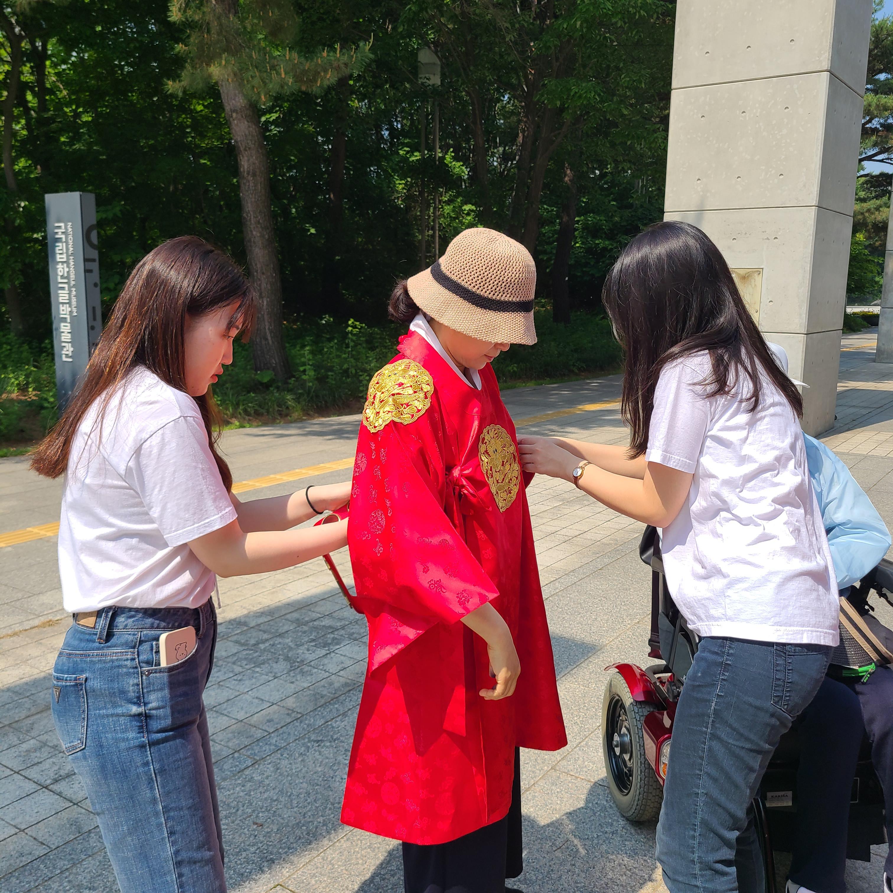 - 세종대왕 의상을 입고, 마련된 사진 촬영 공간에서 기념사진을 남김