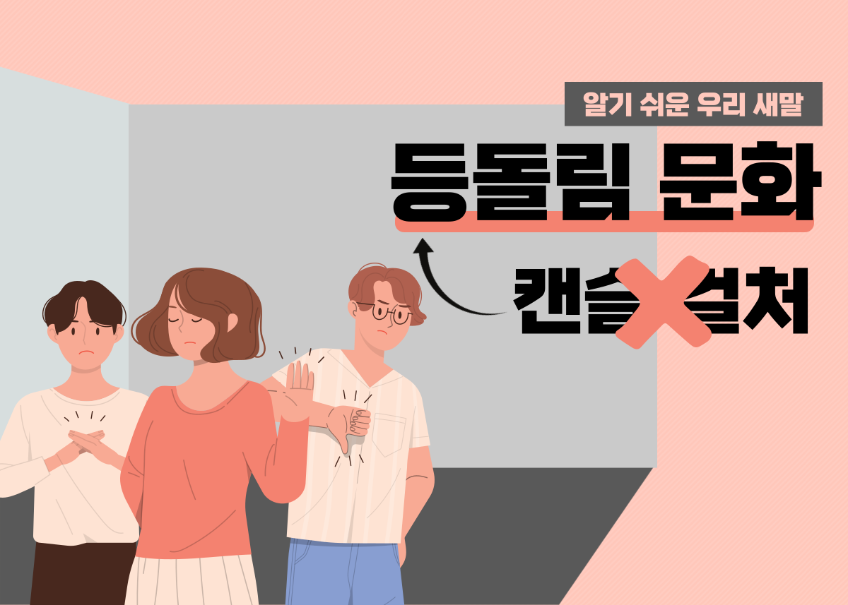 또 다른 하나는 새롭게 등장한 기술이나 현상이라 우리말로 이를 일컬을 말이 정착하기 전에 영어 표현부터 쓰기 시작한 것이다. 지금부터 살펴볼 ‘캔슬 컬처(cancel culture)’가 그렇다.