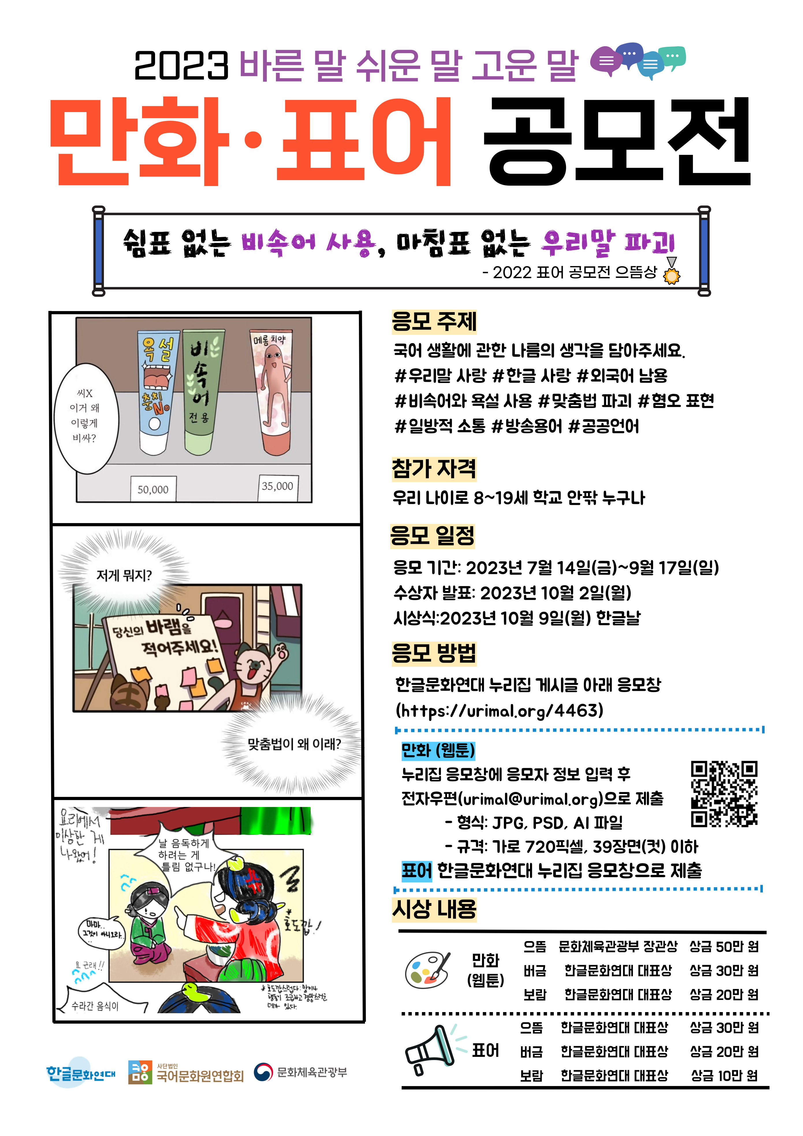<2023 바른 말 쉬운 말 고운 말 만화·표어 공모전>