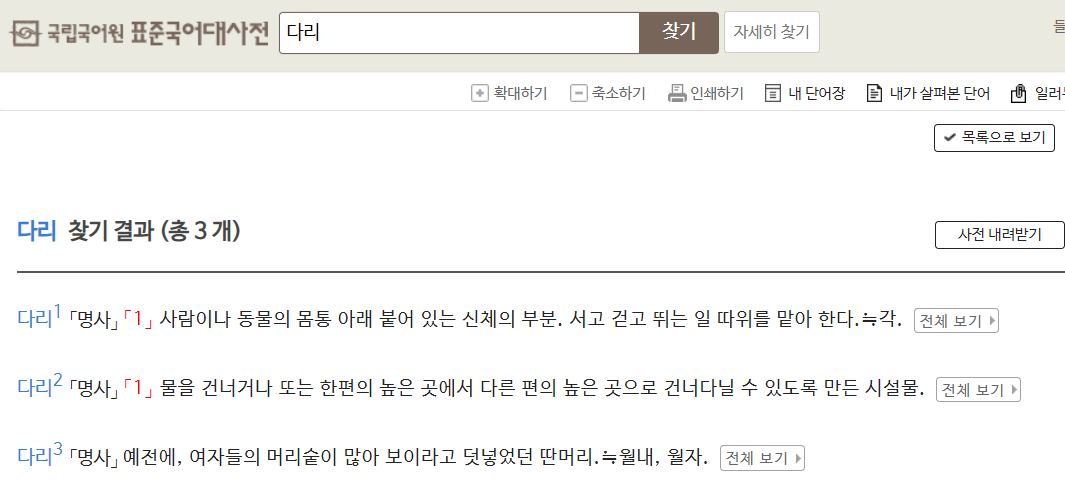 동음이의어 예시 (출처: 표준국어대사전)