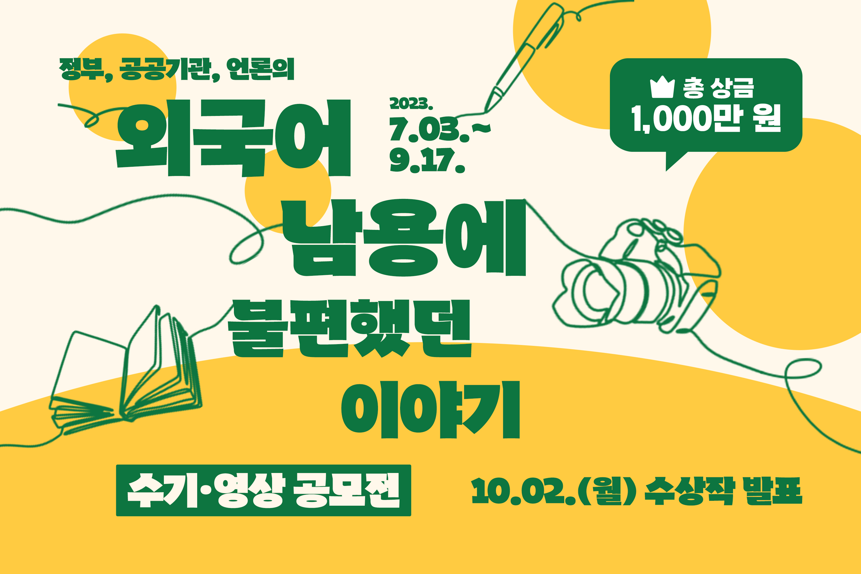이번 공모전은 외국어 대신 알기 쉬운 우리말을 ‘공공언어’로 적극 활용하자는 취지를 담고 있으며, 공공언어의 외국어 남용에 대해 불편함을 겪은 개인의 이야기를 직접 듣는 창구를 마련하고자 2021년부터 매년 진행하고 있다. 올해는 7월 3일부터 9월 17일까지 진행된다.