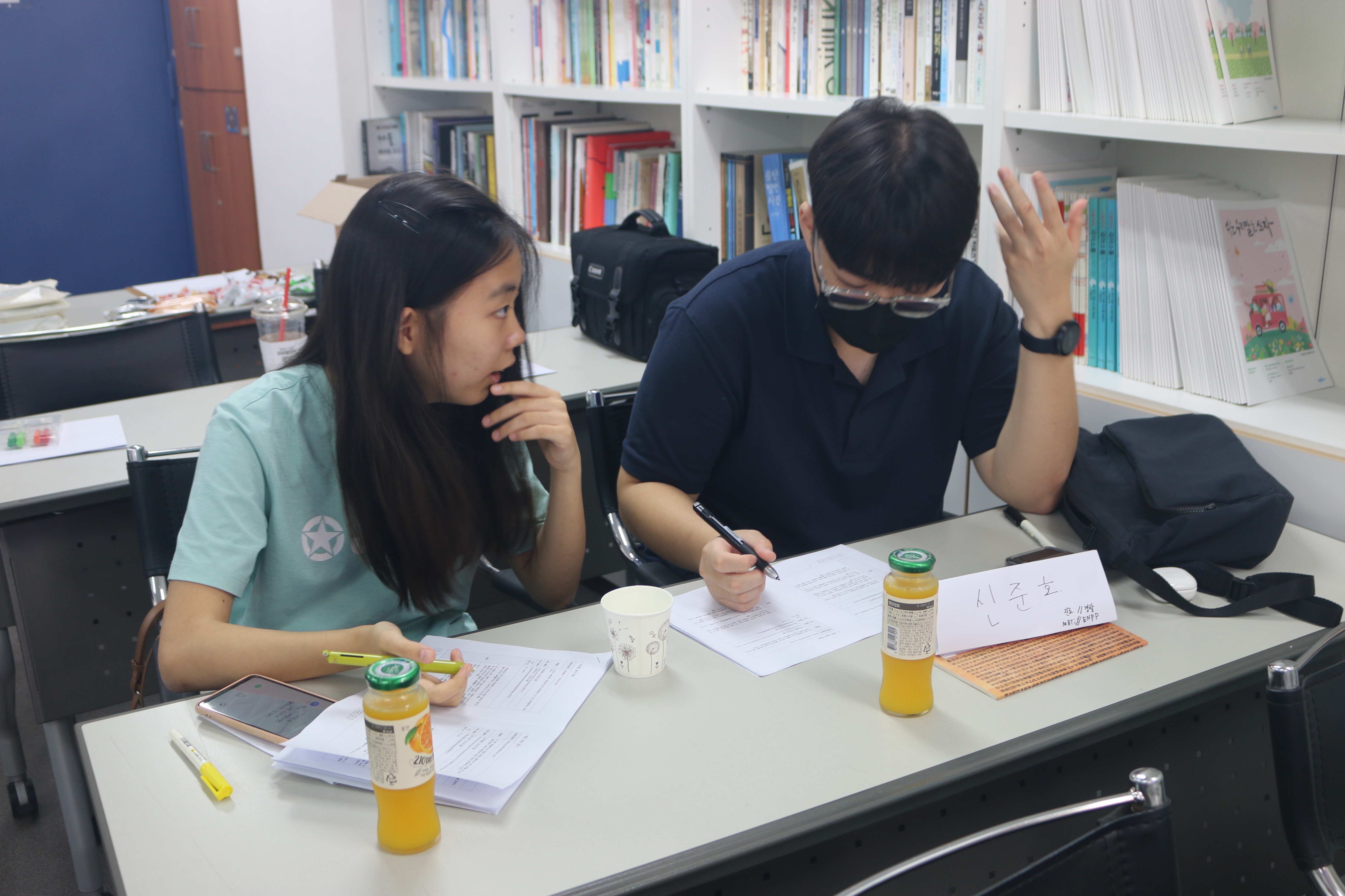 이건범 한글문화연대 대표님께서 '언어는 인권이다'를 주제로 강연을 들려주셨습니다. 대표님께선 한글과 한국어의 개념을 명확하게 알려주시고, 사례를 들어 우리말글을 사랑해야 하는 이유를 설명했습니다. 또, '언어와 인권'의 관계성과 우리말글의 중요성이 담긴 강연으로 학생들의 올바른 우리말글 인식과 인권 감수성을 높였습니다. 대표님의 열띤 강연에 화답하듯 다들 엄청난 집중력으로 강연을 들어 그 열기에 윤이나 연구원은 땀까지 삐질 흘렸답니다.