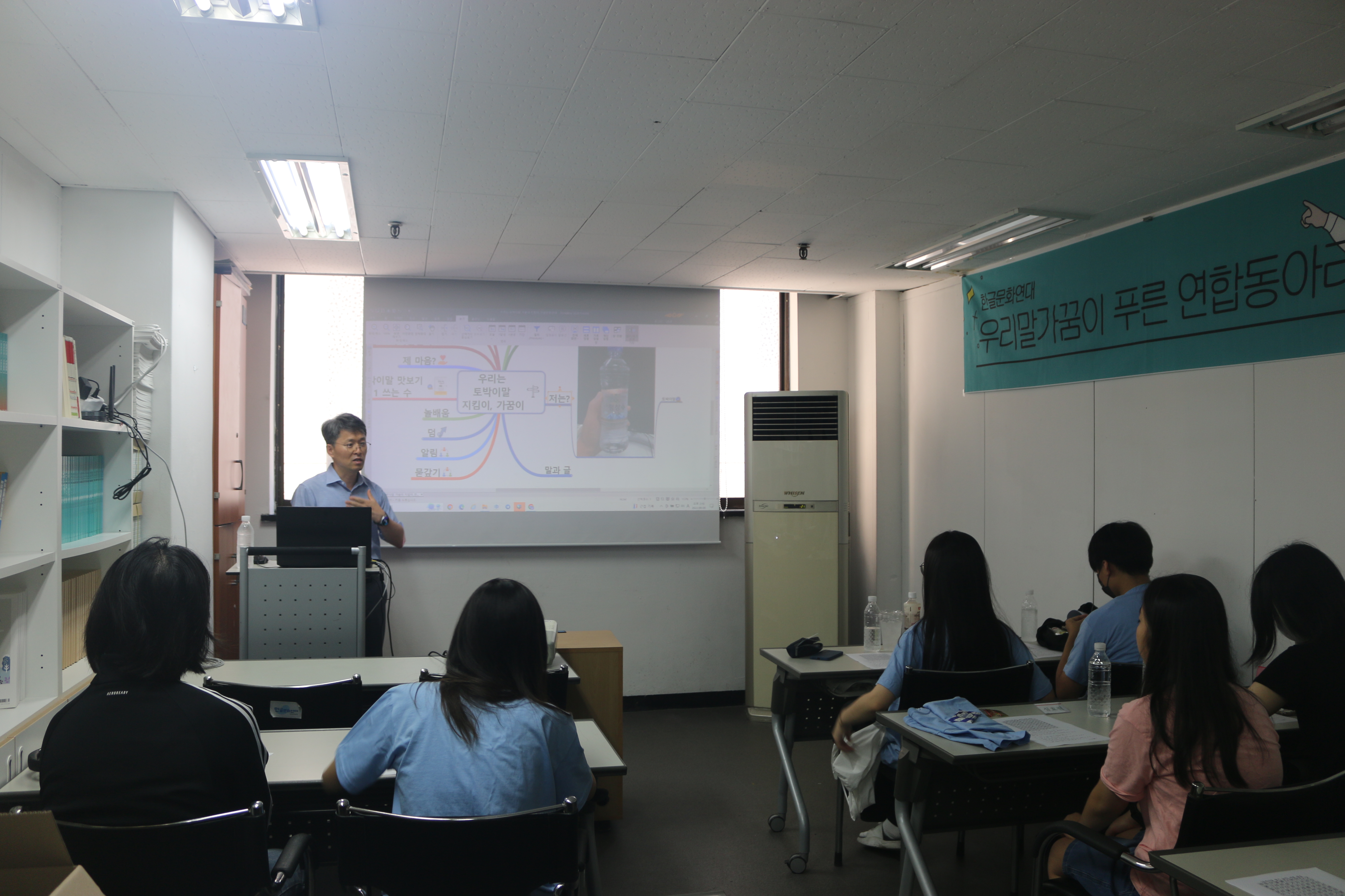 이창수 토박이말바라기 늘맡음빛님께서 '우리는 토박이말 지킴이, 가꿈이'를 주제로 강연을 들려주셨습니다. 계절에 맞는 우리 토박이말을 배우고, 재밌는 게임과 함께 토박이말을 복습했습니다. 특히 우리말가꿈이 푸른 연합동아리 친구들은 '바람꽃'이라는 단어를 좋아했답니다! 게임에서 별명을 지을 때 너도나도 바람꽃이라는 단어를 사용해 진정한 토박이말 지킴이로서의 모습을 엿볼 수 있었습니다.