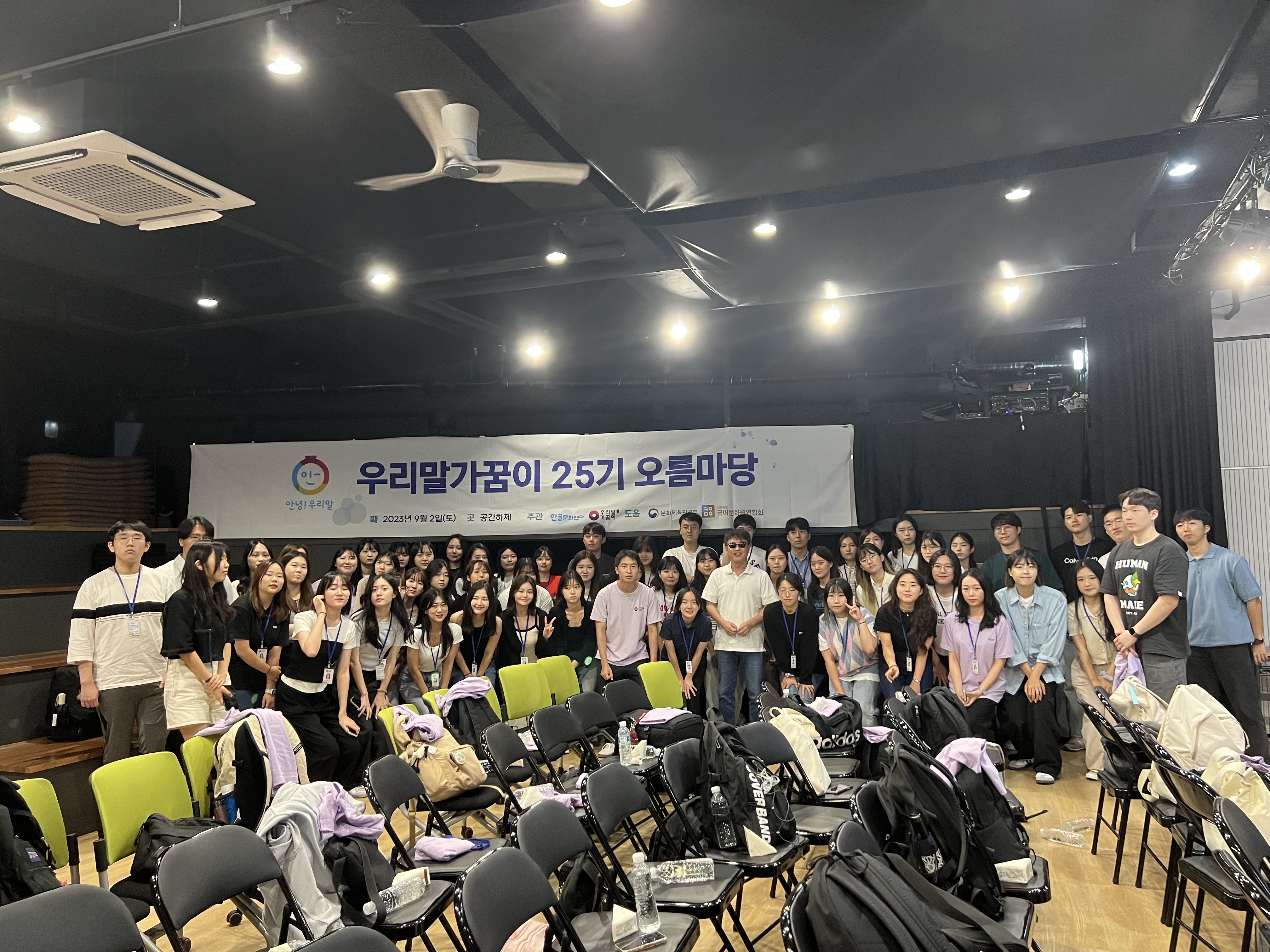 2023년 9월 2일 토요일 아침 9시부터 9월 3일 일요일 아침 11시 30분까지 우리말가꿈이 25기 오름마당과 모꼬지를 진행했습니다. 서류와 대면 면접을 거쳐 '우리말가꿈이 25기'로 뽑힌 학생은 모두 62명입니다.