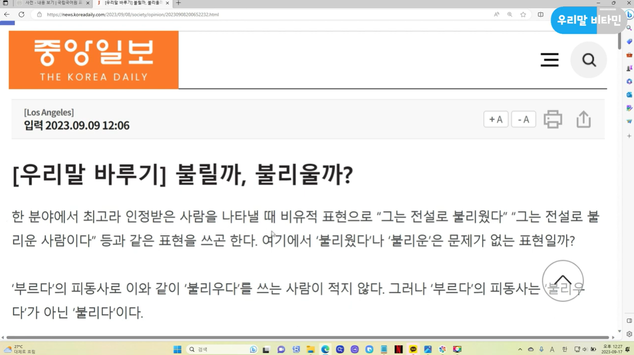 | [우리말 비타민] 야채는 일본말인가 (0) | 2023.09.19 |