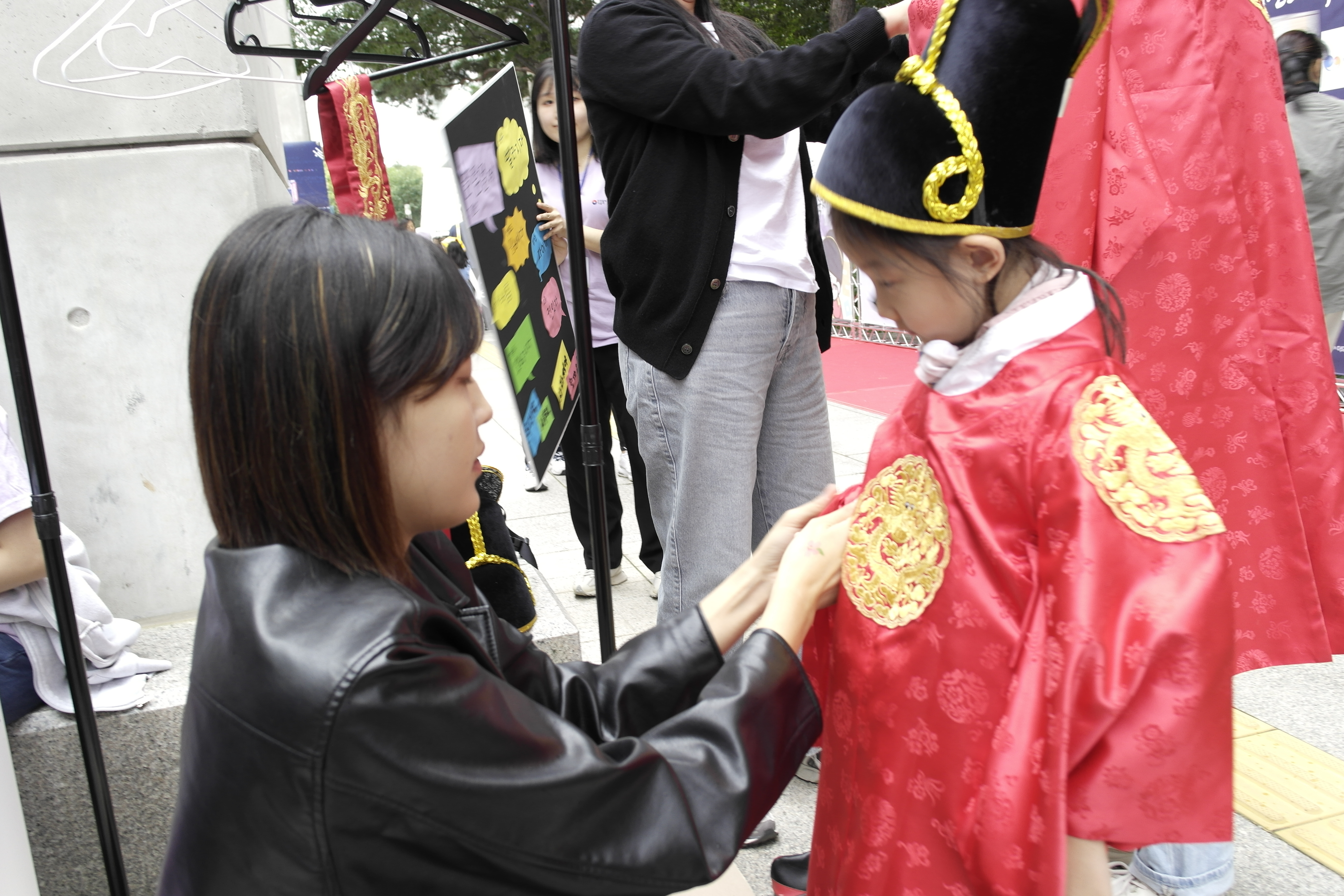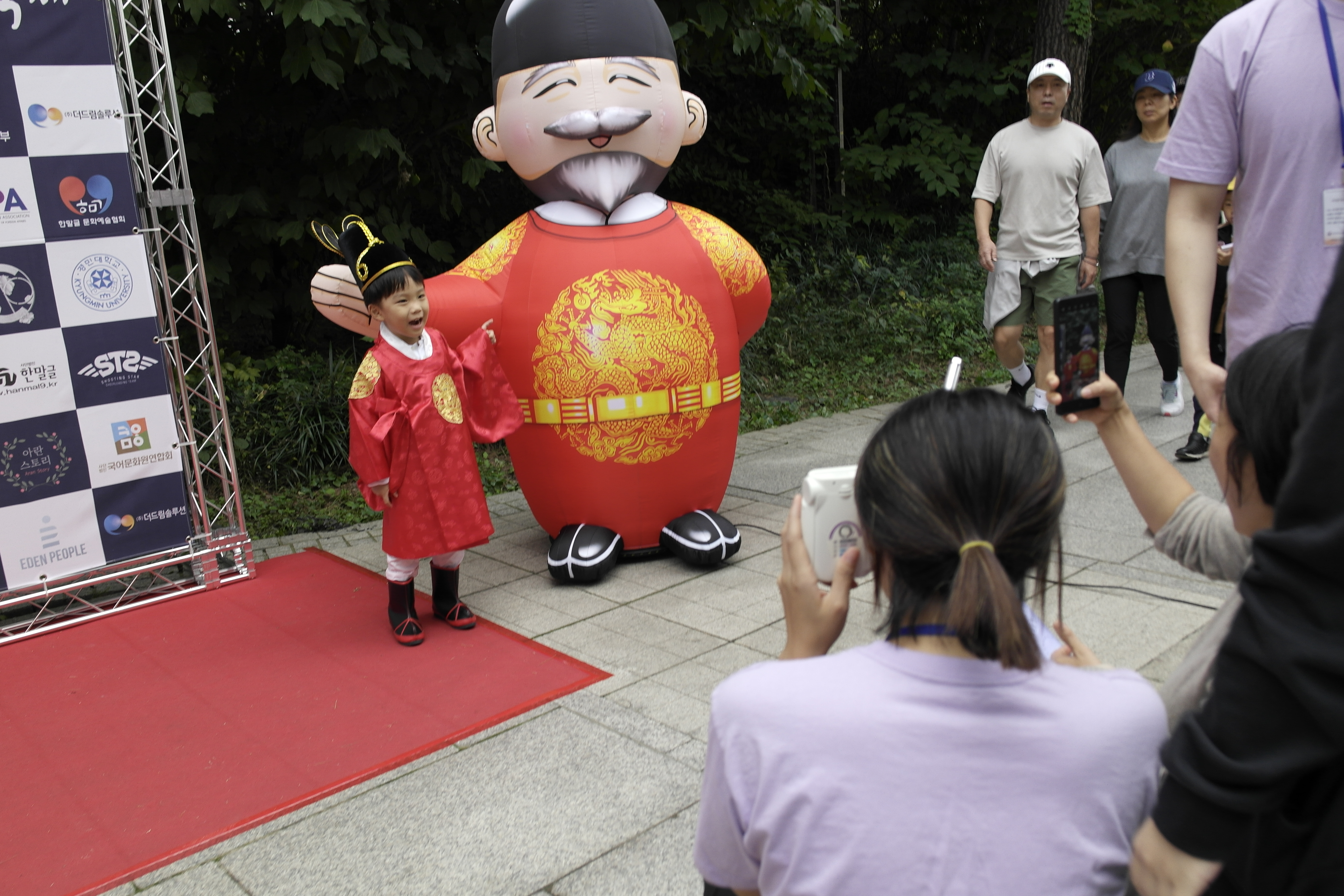 네 이제는 필수 활동이 된 것 같은 세종대왕 의상 체험입니다! 역시 세종대왕 의상을 입고 세종대왕님 앞에 서니 느낌이 남다르죠?