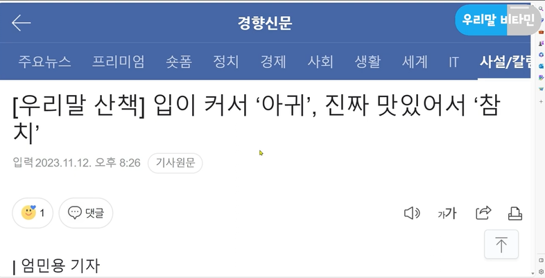| [우리말 비타민] 임이야 님이야 (0) | 2023.11.16 |