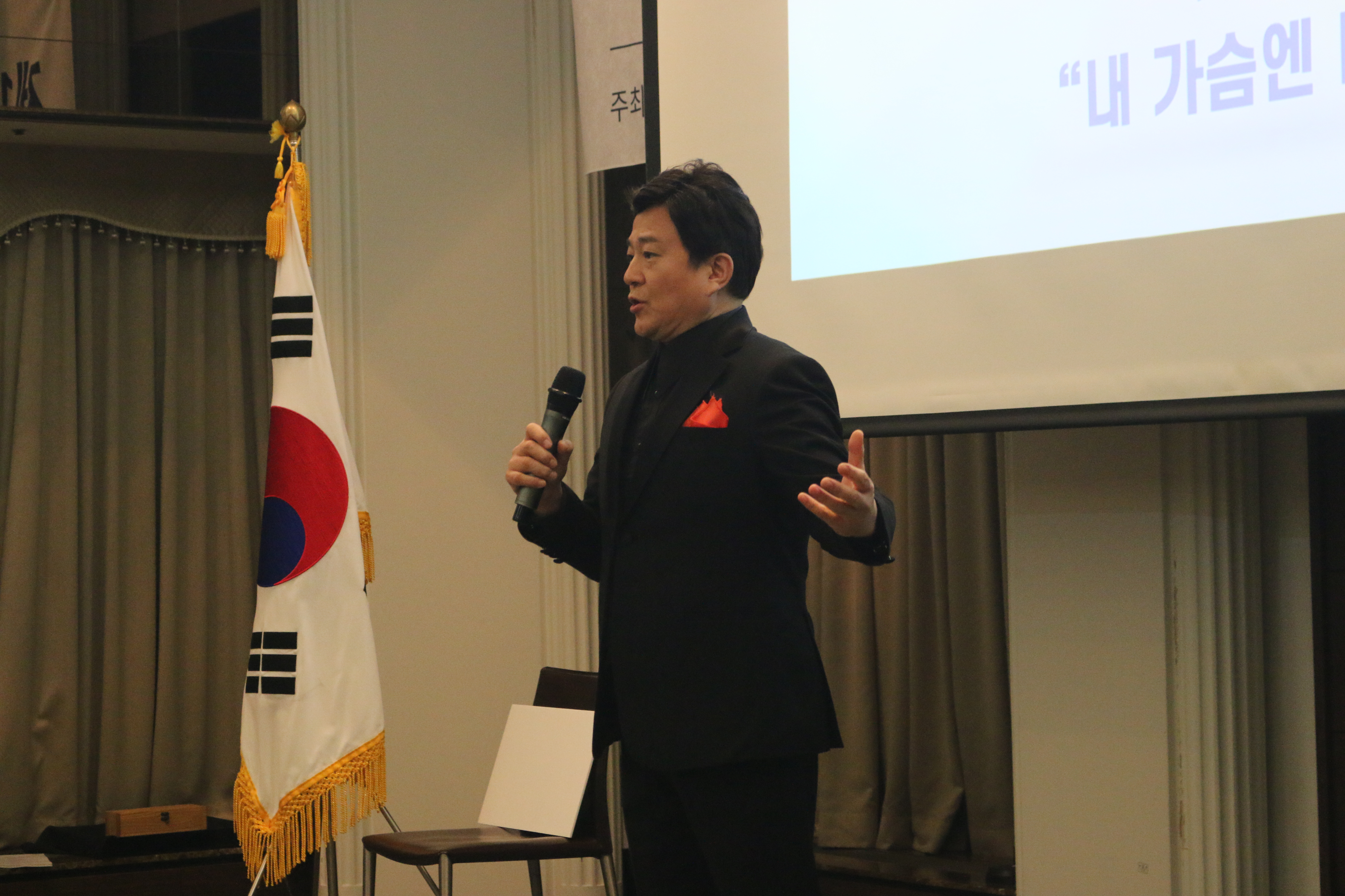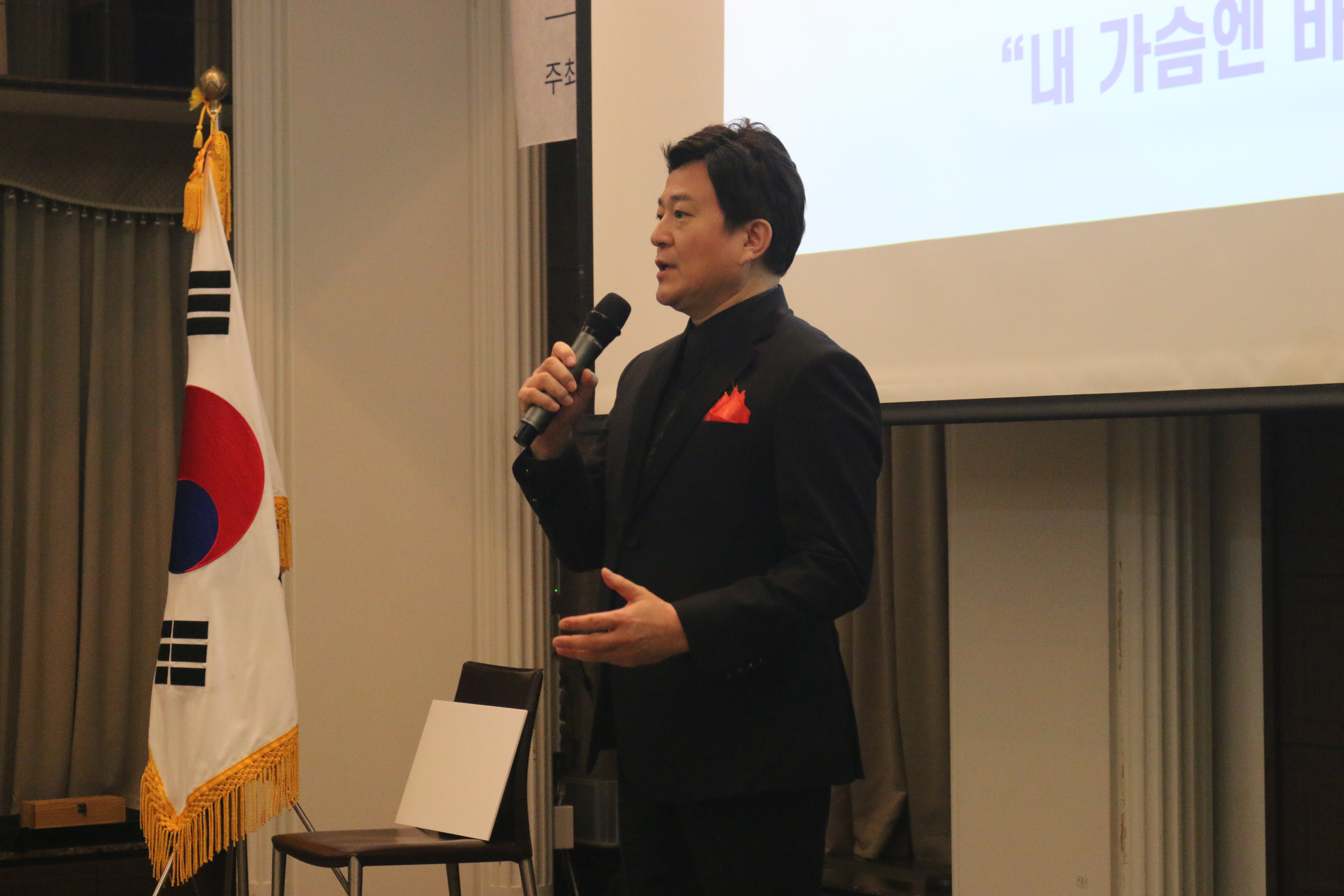 으뜸상 시상 전, 으뜸상을 축하하는 전병호 테너가 부르는 노래 <지금 이 순간>, <내 가슴엔 바다가 있어>를 듣는 시간이 있었습니다. 으뜸상에 대한 기대를 한 층 더 높이고 분위기를 뜨겁게 하는 노래였습니다.