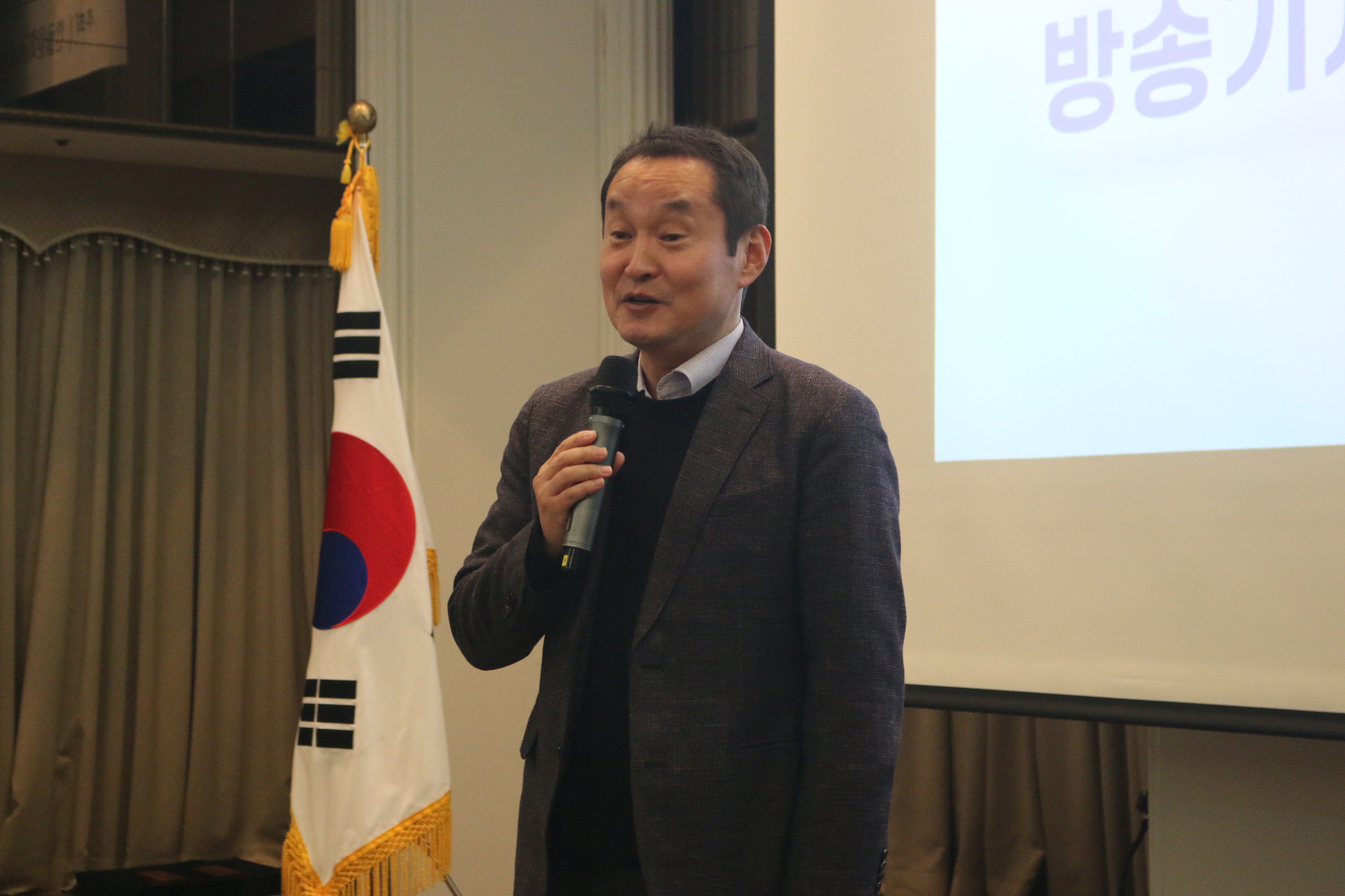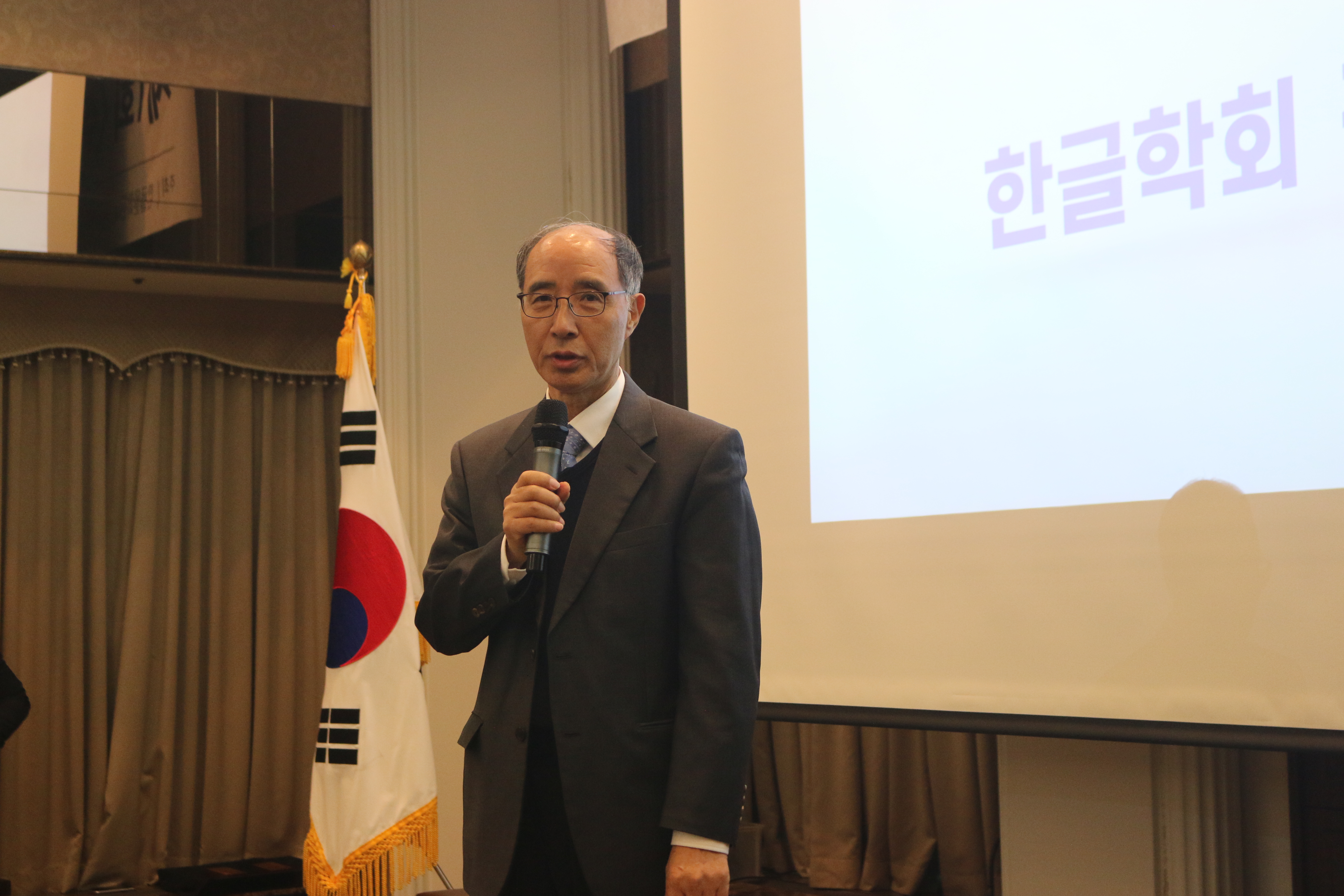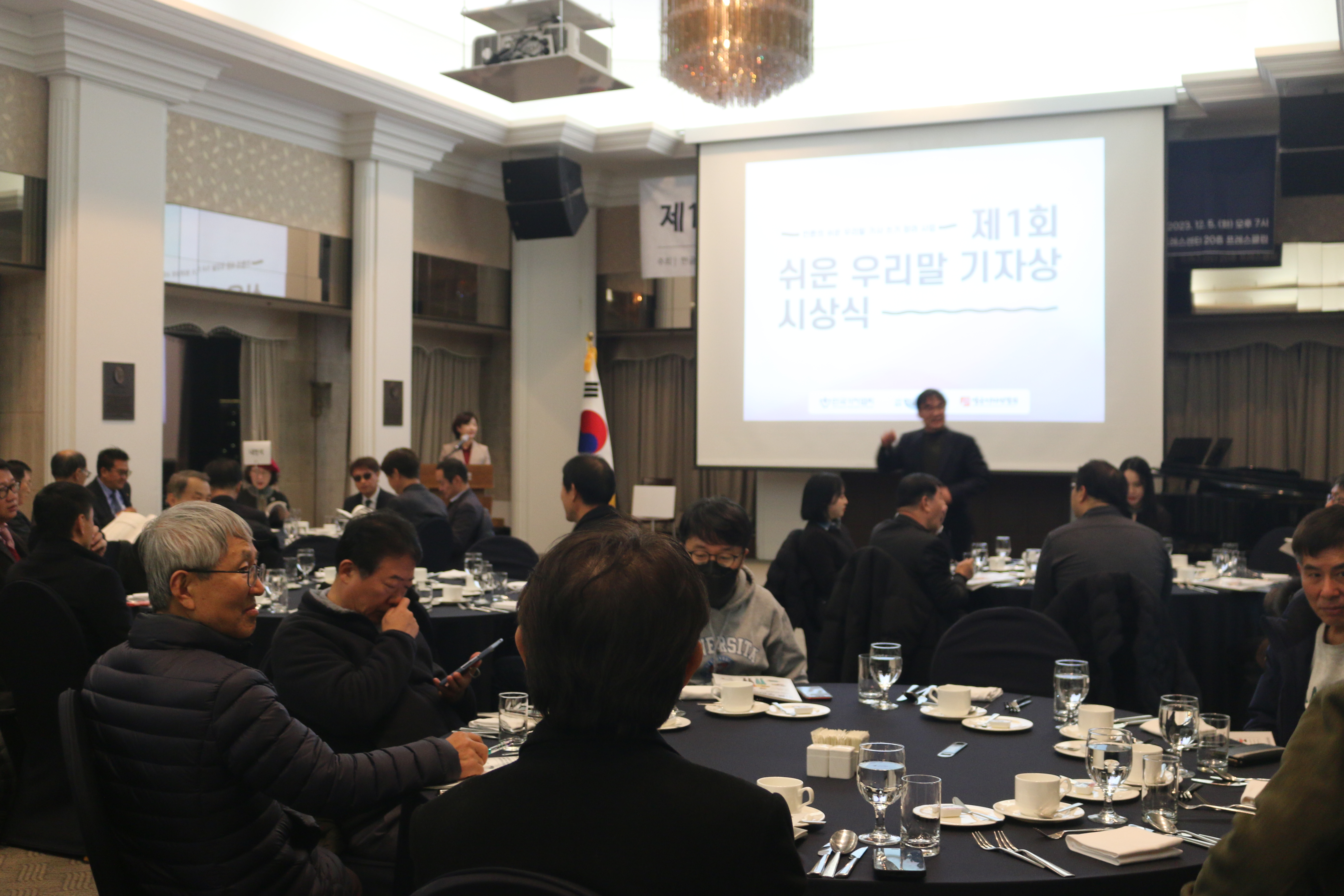 영상 시청 후, 시상식에 참여한 내빈 소개와 함께 인사말 및 축사를 듣는 시간이 있었습니다. 한글문화연대 이건범 대표님의 인사말을 시작으로, 한국기자협회 김동훈 회장님, 방송기자연합회 양만희 회장님의 인사말이 이어졌습니다. 이어 한글학회 김주원 회장님의 축사로 참석자 모두 쉬운 우리말의 중요성을 다시 한번 마음속에 새겼습니다.