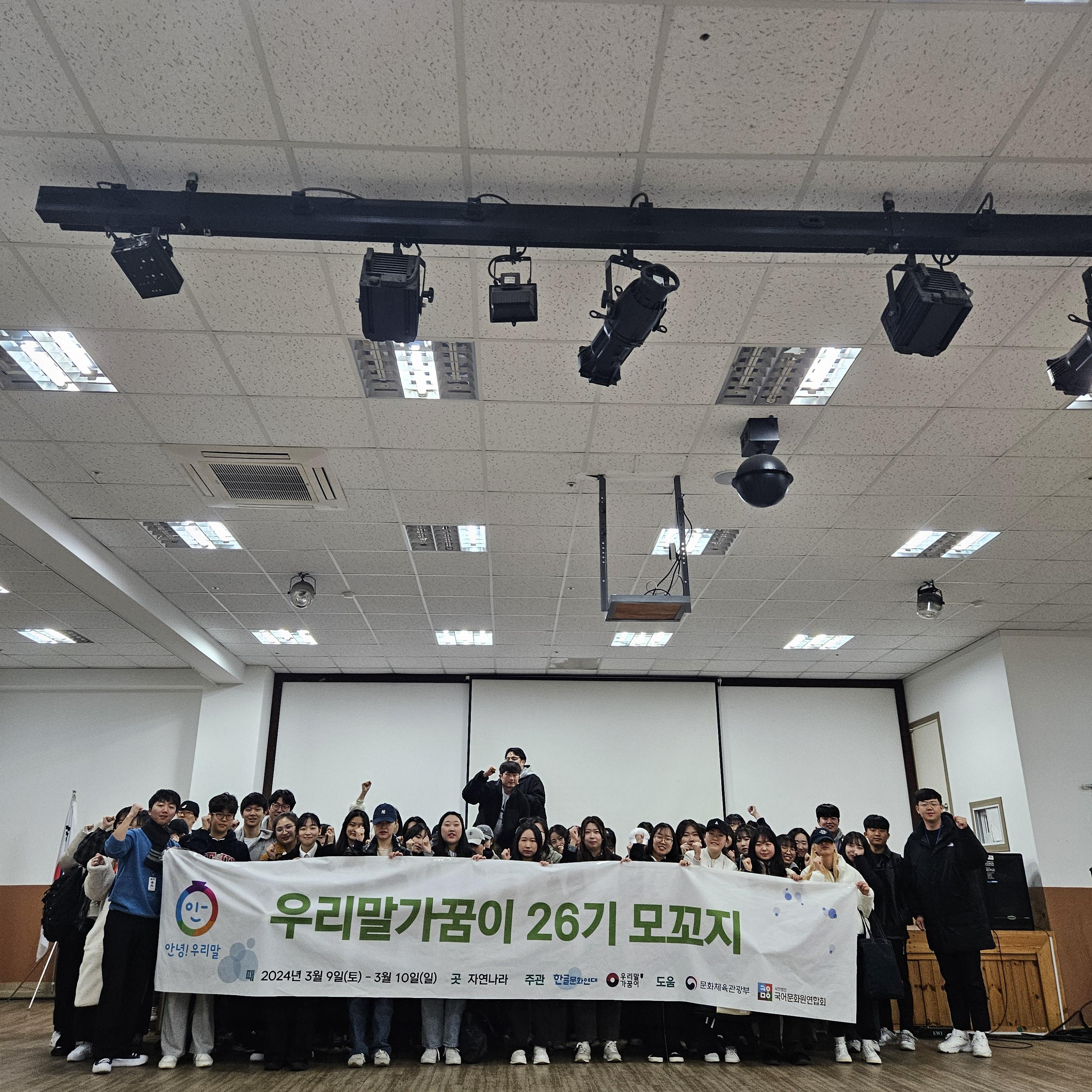 | 우리말가꿈이 26기 모집(~2월 14일까지) (0) | 2024.01.29 |