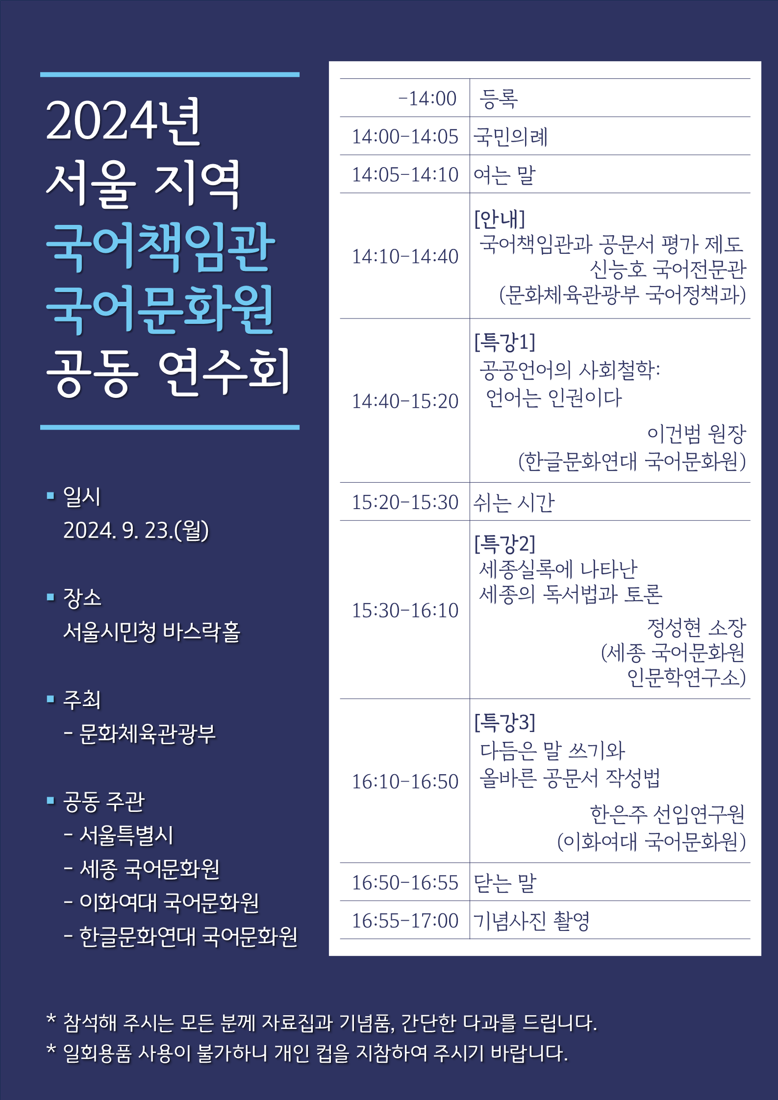 * 내용: 쉽고 바른 공공언어의 중요성, 공문서 쓰기 교육 등