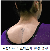 또한 이탈리아의 기계체조 선수 엘리사 이오리오도 한글을 몸에 새겨 화제가 되었다. 이 선수는 '당신 자신을 사랑하세요'라는 한글 문구를 문신으로 새겼는데, 이는 비티에스(BTS)의 앨범 'Love Yourself'를 한글로 번역한 문구이다. 그녀는 평소에도 소셜미디어를 통해 비티에스(BTS)의 열렬한 팬임을 밝혀왔다.