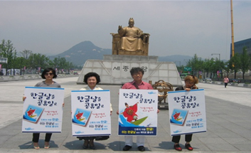 먹을 탁본에 칠해 한지를 그 위에 덮고 누르는 방식으로 훈민정음의 서문을 많은 사람들에게 알렸고, 토박이말로 된 지워지는 문신 딱지를 사람들에게 붙여주며 우리말과 그 뜻의 아름다움을 알렸다. 이날 한글문화연대의 행사 부스에는 많은 수의 어린이들과 학생들, 또 외국인들이 다녀갔다.