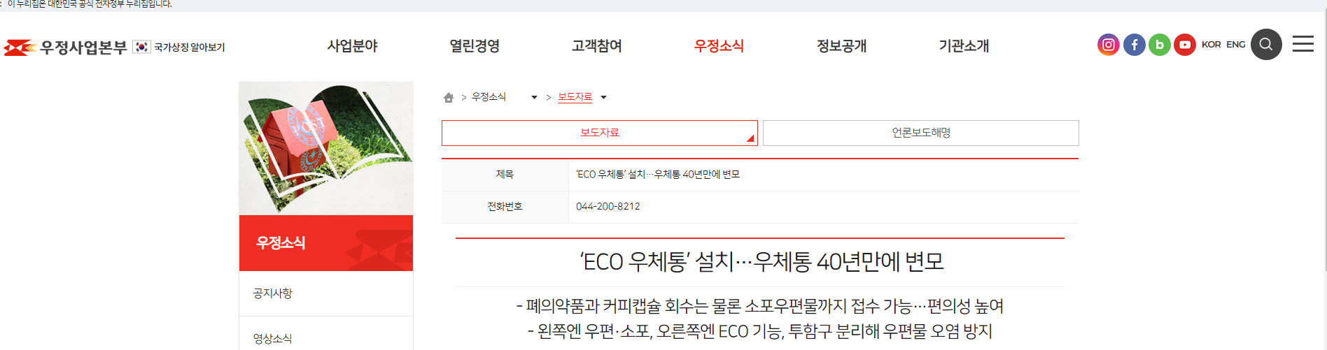 [민원] ECO우체통을 국어기본법에 맞게 바꿔 주세요. 과학기술정보통신부 우정사업본부 - 2024.12.17