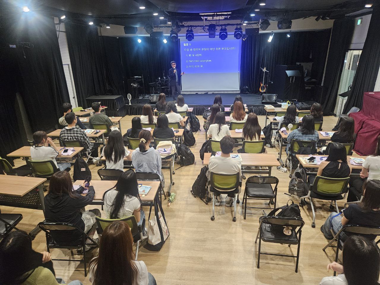 오름마당에서는 먼저 간단한 일정 소개와 함께 곧바로 한글문화연대 이건범 대표님의 우리말글 소양 교육이 진행됐습니다!