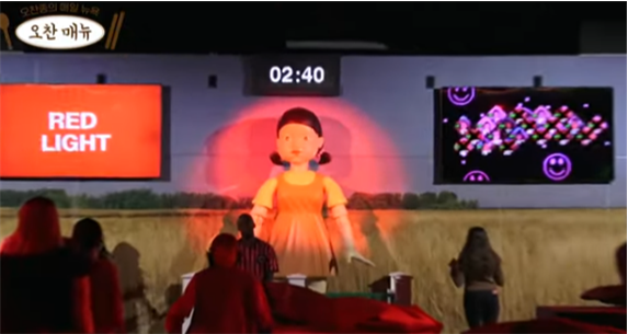 흥행은 단순히 화면 속에서만 끝나지 않았다. 지난 2024년, 미국 뉴욕 맨해튼 중심 거리에는 <오징어 게임>의 상징인 456억 원 상금 구슬통과 이를 지키는 거대한 로봇 ‘영희’가 등장했다. 이를 배경으로 기념사진을 찍으려는 인파가 몰리면서 거리는 극심한 정체를 빚기도 하였다. 넷플릭스가 마련한 이 체험형 공간은 시민들이 작품 속 놀이와 분위기를 직접 경험할 수 있도록 한 기획이다. 로스앤젤레스에 이어 뉴욕에서 열린 이 팝업 행사는, 공개 예정이었던 두 번째 편에 대한 기대감을 높이는 동시에 K-콘텐츠의 세계적 영향력을 다시 한번 증명했다.