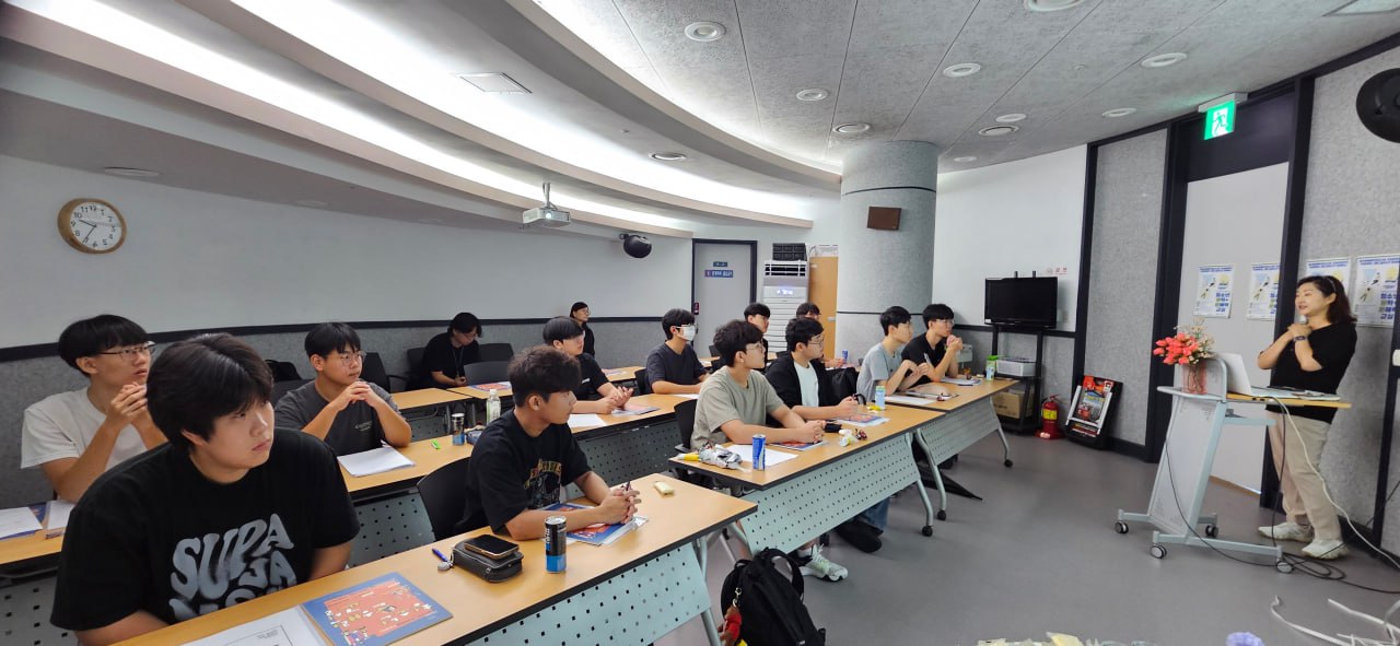 13일 오전 9시30분부터 오후 1시30분까지 진행된 수업은 책 <나를 모르는 나에게>를 주교재 했다. 단순히 책을 읽고 학습하듯이 하는 수업이 아니라, 노래 가사 알아보기, 사전 찾기, 협동화 그리기 등 다양한 활동을 통해 흥미를 유발하는 문해력 수업을 진행했다. 특히 자신의 성향(MBTI)을 알아보는 내용은 학생들의 관심을 끌었다. 고등학생 남학생만을 대상으로 한수업은 4시간이라는 긴 시간이 무색할 정도로, 시간이 모자라다는 의견이 있을 정도로 흥미롭게 진행되었다. 같은 글을 읽으며 생각도 해보고, 또한 그 내용도 살피는 유익한 시간이 되었고, 학생들의 여러 가지 생각거리를 주었다는 대원고 지도교사의 후기가 있었고, 중고등학생들이 도서관을 찾는 계기가 되어 무척 뜻깊었다고 중곡체육문화도서관 정찬종 사서가 감사의 뜻을 밝히기도 했다.