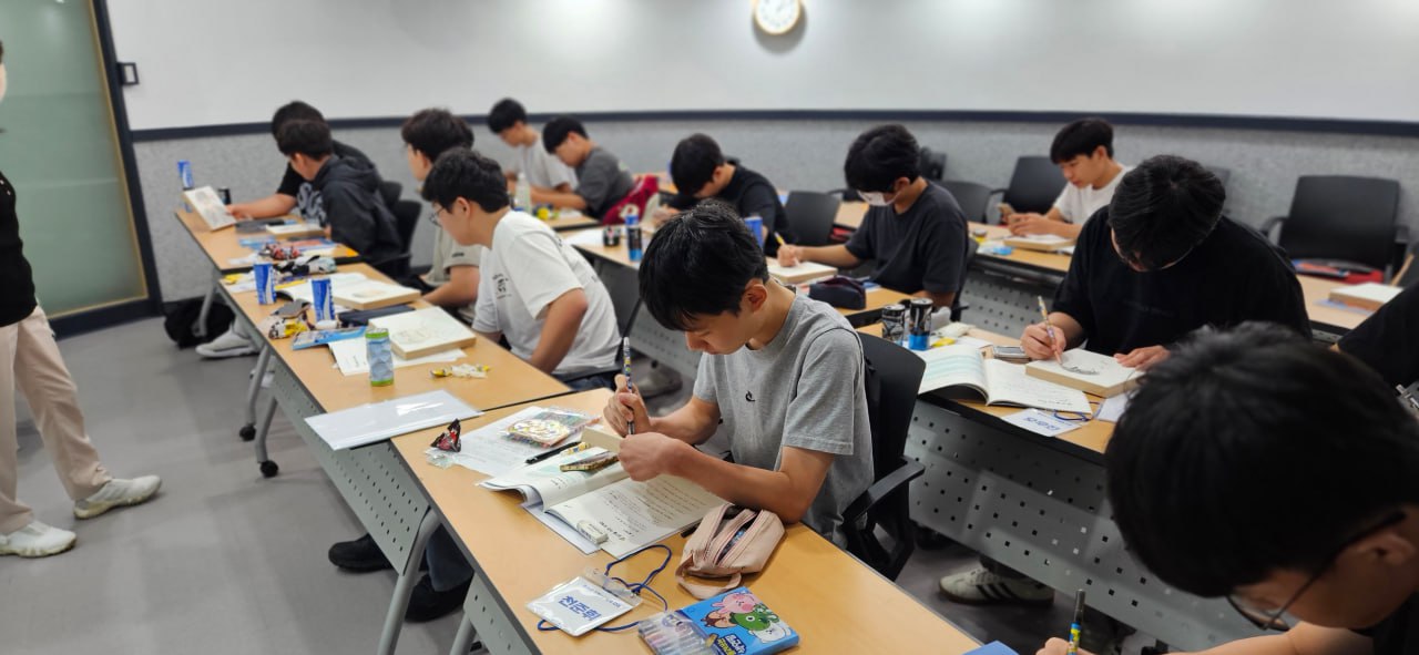 13일 오전 9시30분부터 오후 1시30분까지 진행된 수업은 책 <나를 모르는 나에게>를 주교재 했다. 단순히 책을 읽고 학습하듯이 하는 수업이 아니라, 노래 가사 알아보기, 사전 찾기, 협동화 그리기 등 다양한 활동을 통해 흥미를 유발하는 문해력 수업을 진행했다. 특히 자신의 성향(MBTI)을 알아보는 내용은 학생들의 관심을 끌었다. 고등학생 남학생만을 대상으로 한수업은 4시간이라는 긴 시간이 무색할 정도로, 시간이 모자라다는 의견이 있을 정도로 흥미롭게 진행되었다. 같은 글을 읽으며 생각도 해보고, 또한 그 내용도 살피는 유익한 시간이 되었고, 학생들의 여러 가지 생각거리를 주었다는 대원고 지도교사의 후기가 있었고, 중고등학생들이 도서관을 찾는 계기가 되어 무척 뜻깊었다고 중곡체육문화도서관 정찬종 사서가 감사의 뜻을 밝히기도 했다.