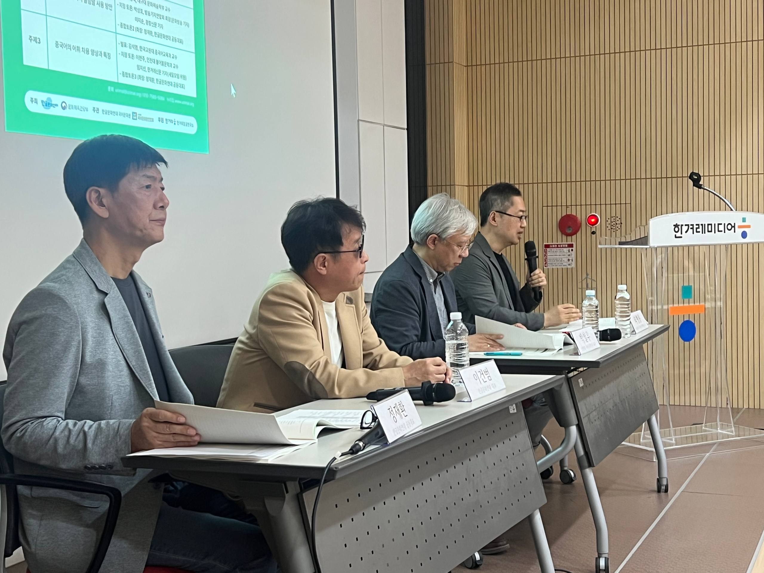 이번 토론회는 “공공언어 속 외국낱말, 외국문자 줄일 방안”을 주제로 하여 한글문화연대 이건범 대표, 대구대 이정복 교수, 교원대 김석용 교수가 각각 발표를 하고 토론자와 방청객이 이에 대해 토론하는 시간을 갖는 시간이었습니다.