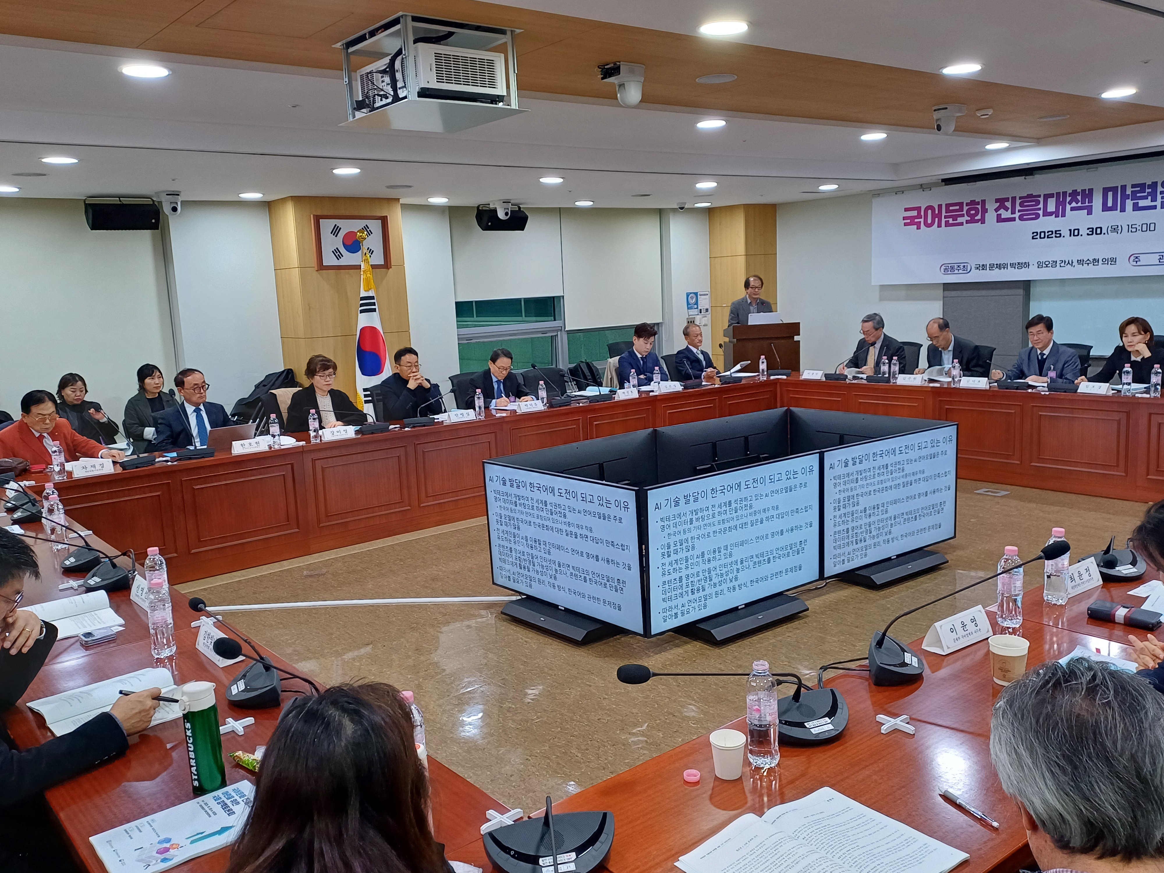 2025년 10월 30일 목요일, 국회의원회관 제9간담회의실에서 국어문화 진흥대책을 위한 국회 정책토론회가 진행됐습니다.