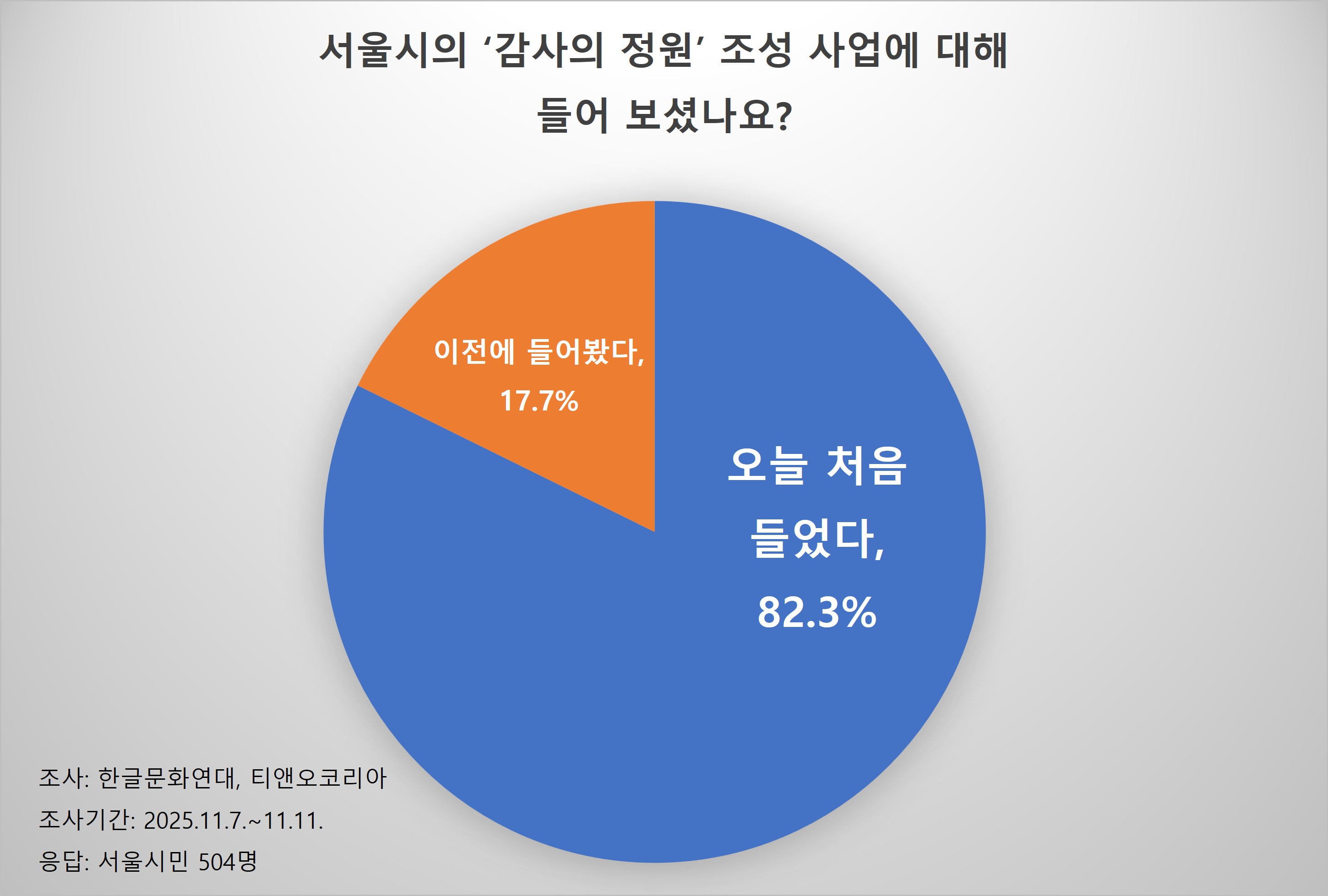 이번 여론 조사는 사단법인 한글문화연대(대표 이건범)에서 여론 조사 전문업체 티앤오코리아(TNO KOREA)에 의뢰하여 11월 7일부터 닷새 동안 20~74세 서울 시민 504명을 상대로 휴대전화 온라인 패널 조사 방식으로 진행했다. 95% 신뢰수준에 표본 오차는 +/- 4.37%이다.