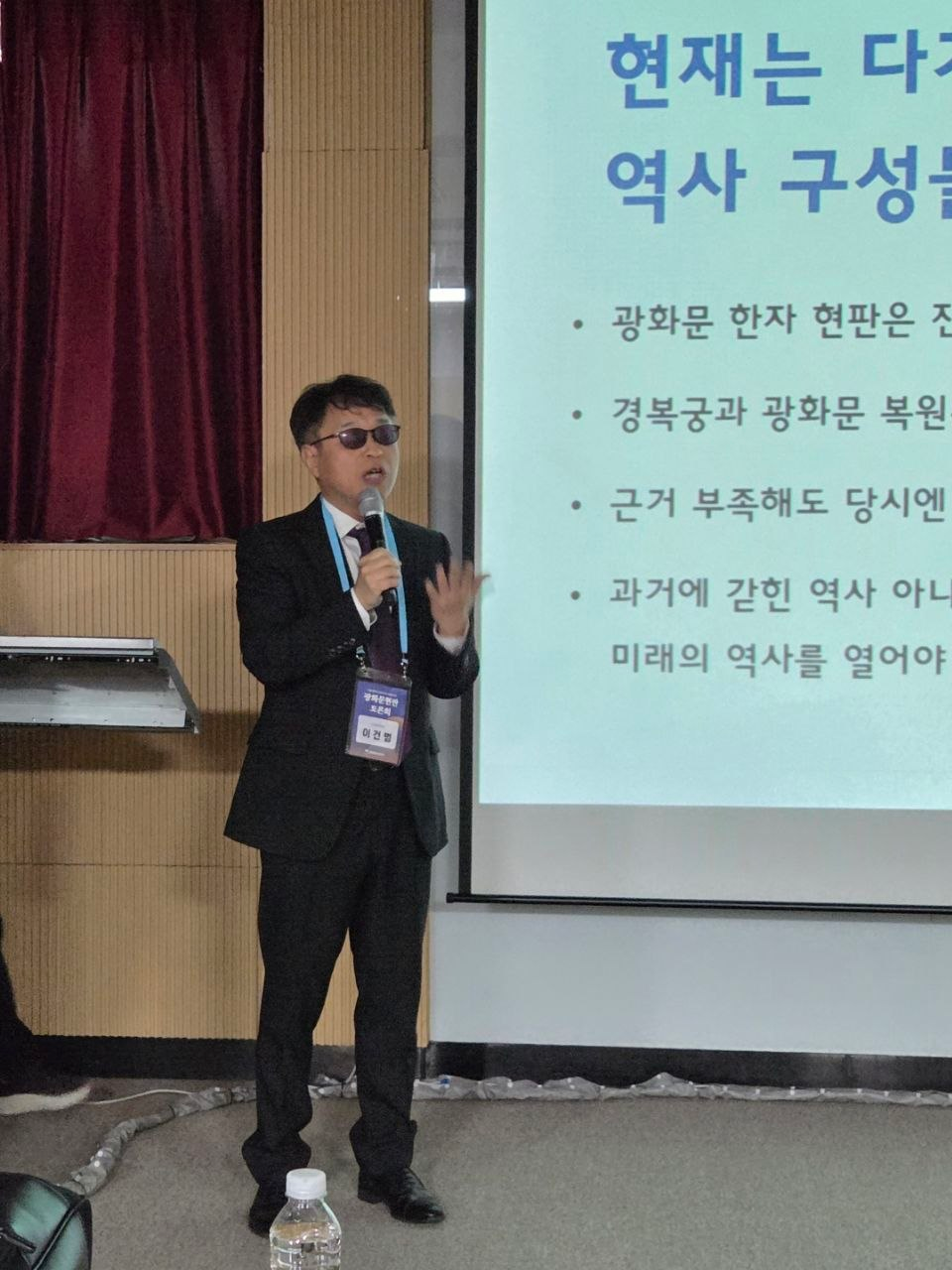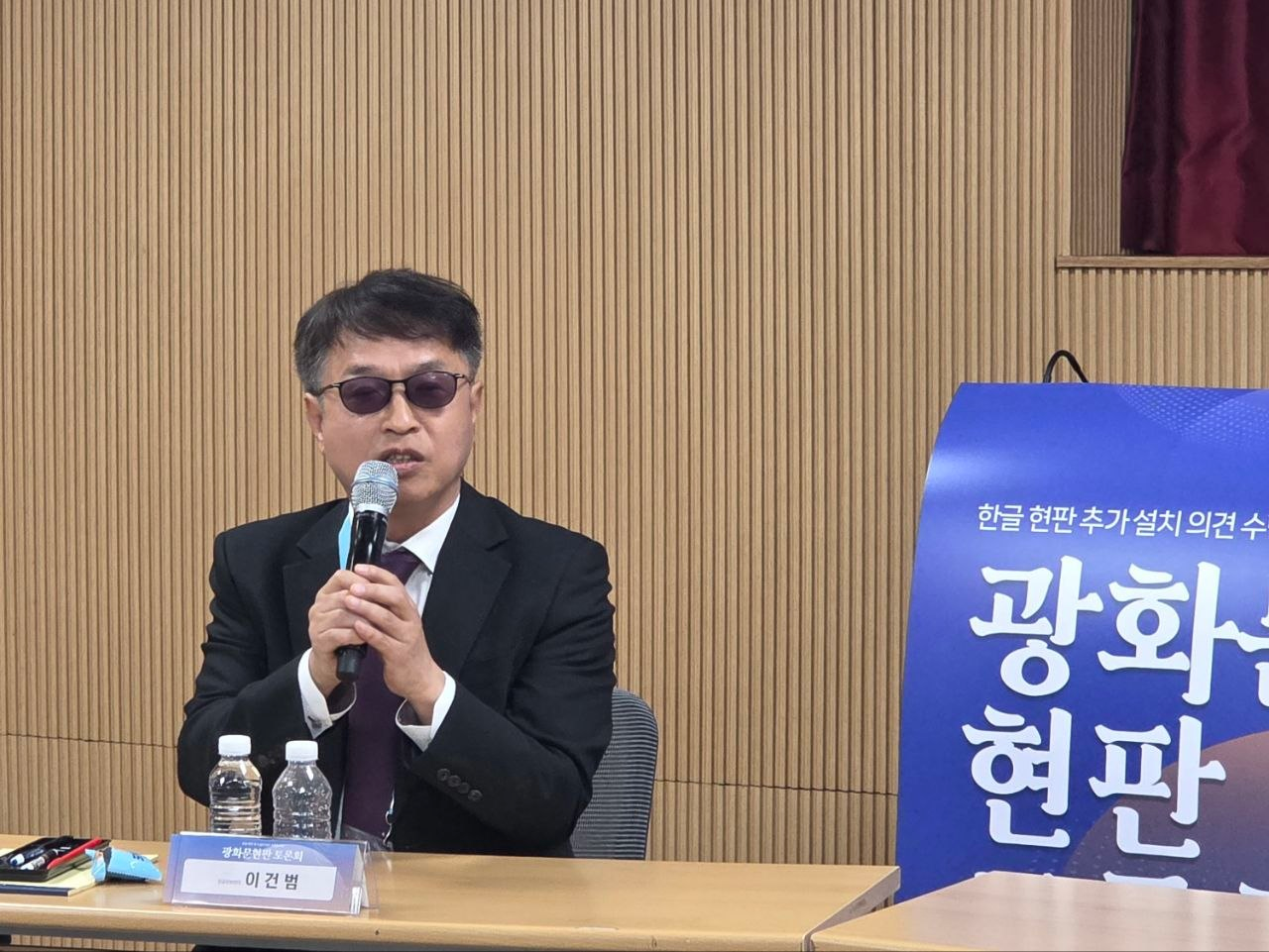 이건범 대표는 광화문 한글 현판 설치의 필요성을 강조했습니다. 이건범 대표는 “한글은 대한민국 국가 정체성의 기본”이라며, 국가 상징 공간인 광화문에 한글 현판이 없는 점을 지적하고, 한글 현판 설치가 국가 정체성을 상징적으로 보여준다고 밝혔습니다.