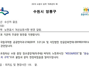2019/04/122 [공문/답변]수원 광교중앙역 신분당선 1번 출구 앞 “Kiss & Ride” 바닥 표시를 우리말로 바꿔주세요. 수신 수신자 참조 (경유) 제목 노면표시 개선요청사항 변경 알림. 1. 귀 기관의 무궁한 발전을 기원합니다. 2. 국립국어원 공공언어과-218(2019.3.21)호 및 사단법인 한글문화연대-2019031901호와 관련입니다. 3. 요청하신 수원 중앙 광교중앙역(아주대) 바닥의 노면표시인 "KISS&RIDE"를 "환승 정차 구역"으로 붙임과 같이 변경하였음을 알려드립니다. 붙임: 위치도 및 현장 사진 1부. 끝. 2019. 4. 12. 한글 아리아리 715 한글문화연대 소식지 715 2019년 4월 11일 발행인 : 이건범 (한글문화연대 상임대표) 한글문화연대 바로가기 ◆ [우리말 이야기] 바스스하다, 아스스하다 - 성기지 운영위원 혼자 지내는 연예인의 일상을 비춰주는 방송 프로그램에서, 막 자고 일어난 모습을 나타내는 ‘부시시한 모습’이란 자막을 보았다. 머리카락이 어지럽게 흐트러져 있는 모양을 나타낼 때, ‘머리가 부시시하다’, ‘부시시한 머리카락’이라고 말하는 경우가 많이 있다. 이는 모두 ‘부스스하다’로 바로잡아 써야 한다. “자고 일어났더니 머리가 부스스하다.”, “부스스한 머리로 밖에 나갔다.”처럼 말해야 올바른 표현이 된다. 이 ‘부스스하다’의 작은말로 쓰이는 것이 ‘바스스하다’이다. 머리카락이 조금 흐트러져 있으면 ‘부스스하다’보다는 ‘바스스.. 2019. 4. 12. 이전 1 다음