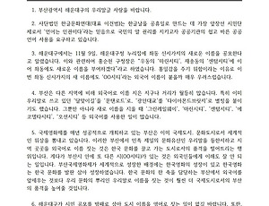 2020/11/192 [누리방송6-24] '든'과 '던' 구별하기 문어발, 재밌게가 함께 하는 우리말(한국어) 전문 누리방송, 유익하고 재미있습니다. [우리말 아리아리 여섯째 타래 24회] ▶ 알고 보니 한글은 15- '든'과 '던' 구별하기 한글과 한국어에 대한 각종 오해를 풀고 올바르고 정확한 지식을 알려드립니다! ▷ 출연: 문어발(이건범), 재밌게(김명진)▷ 제작: 한글문화연대 국어문화원 날마다 하나씩 올라갑니다! 월: 새말이 나왔어요화: 내가 만든 새말수~금: 알고보니 한글은 "우리말 아리아리" 유튜브에서 듣는 방법1. 유튜브(youtube.com)에 접속하여 '우리말 아리아리'로 검색한다.2. 재생목록 '우리말아리아리'에서 각 회차를 선택하여 보고 들을 수 있다.3. 유튜브 '한글문화연대'를 구독하고 좋아요를 누른다.4. 우리말 아리아리 유튜브 주소를 누리소통.. 2020. 11. 19. [공문] 좌동 신시가지의 새 이름을 외국어로 짓지 말아 주십시오. 받는 이 부산광역시 해운대구청장함께 받는 이 부산광역시 해운대구 기획조정실 제목 좌동 신시가지의 새 이름을 외국어로 짓지 말아 주십시오. 1. 부산광역시 해운대구의 우리말글 사랑을 바랍니다. 2. 사단법인 한글문화연대(대표 이건범)는 한글날을 공휴일로 만드는 데 가장 앞장선 시민단체로서 ‘언어는 인권이다’라는 믿음으로 국민의 알 권리를 지키고자 공공기관의 쉽고 바른 공공언어 사용을 요구하고 있습니다. 3. 해운대구에서는 11월 9일, 해운대구청 누리집에 좌동 신시가지의 새로운 이름을 공모한다고 알렸습니다. 이와 관련하여 홍순헌 구청장은 “우동의 ‘마린시티’, 재송동의 ‘센텀시티’에 이어 좌동에도 새로운 이름을 부여하겠다”라고 하였습니다. 통일감을 주기 위함이라는 이유로 이번 좌동 신시가지의 새 이름에도 .. 2020. 11. 19. 이전 1 다음