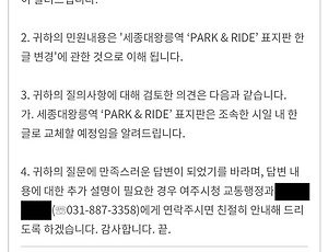 2020/12/085 원클릭 -> 단박, 단박에 원클릭 -> 단박, 단박에 ‘원클릭’의 쉬운 말로 ‘단박, 단박에’ 선정- 한글문화연대 말모이 모임 ‘원클릭’이라는 외국어를 대신할 우리말로 ‘단박, 단박에’가 뽑혔다. 공공기관이나 언론이 사용하는 어려운 말을 쉬운 말로 다듬기 위해 꾸려진 한글문화연대 말모이 모임이 12월 1일부터 12월 7일까지 ‘원클릭’의 쉬운 우리말을 논의한 결과였다. ‘원클릭(one-click)’은 단 한 번의 접속을 의미한다. 보통 복잡한 절차를 거치지 않고 간편하고 신속하게 일을 처리하는 것을 지칭할 때 주로 쓴다. 1997년 전자상거래 회사 아마존이 개발한 서비스의 이름으로 처음 사용되었지만, 현재는 기업뿐만 아니라 공공기관에서 흔히 쓰는 단어가 되었다. 한 기사의 대목 “결제 핵심은 앱을 실행하기만 하면 바로 결제 QR코.. 2020. 12. 8. [공문/답변] 세종대왕릉역 앞 'Park&Ride'라는 표지판을 우리말로 바꿔주십시오. 1. 안녕하십니까? 귀하께서 국민신문고를 통해 신청하신 민원(신청번호 1AA-2011-0920363)에 대한 검토 결과를 다음과 같이 알려드립니다. 2. 귀하의 민원내용은 '세종대왕릉역 'PARK&RIDE'표지판 한글 변경'에 관한 것으로 이해 됩니다. 3. 귀하의 질의사항에 대해 검토한 의견은 다음과 같습니다.가. 세종대왕릉역 'PARK&RIDE' 표지판은 조속한 시일 내 한글로 교체할 예정임을 알려드립니다. 4. 귀하의 질문에 만족스러운 답변이 되었기를 바라며, 답변 내용에 대한 추가 설명이 필요한 경우 여주시청 교통행정과(031-887-3358)에 연락주시면 친절히 안내해 드리도록 하겠습니다. 감사합니다. 끝. * 우리말가꿈이 별동대 활동으로 같이 진행하여 답변은 국민신문고로 왔음을 알려드립니다. 2020. 12. 8. [공문] 동탄역 2번 출구의 ‘KR’ 바닥 표시와 표지판을 우리말로 바꿔주십시오. 받는 이: 화성시장함께 받는 이: 화성시 철도트램과장 제목 동탄역 2번 출구의 ‘KR’ 바닥 표시와 표지판을 우리말로 바꿔주십시오. 1. 화성시청의 우리말글 사랑을 바랍니다. 2. 사단법인 한글문화연대(대표 이건범)한글날을 공휴일로 만드는 데 가장 앞장선 시민단체로서 ‘언어는 인권이다’라는 믿음으로 국민의 알 권리를 지키고자 공공기관 및 언론의 쉽고 바른 언어 사용을 요구하고 있습니다. 3. 한글문화연대에서 주관하는 대학생 대외활동 동아리 ‘우리말가꿈이’에서는 세종대왕릉역과 광교중앙역, 탄현역, 여주역 등 열두 개 역의 ‘Kiss&Ride’를 ‘환승정차구역’이라는 우리말로 바꾸는 활동을 계속하고 있습니다.키스앤라이드는 대중교통수단을 탈 때, 운전자는 내리지 않고 같이 타고 온 대중교통 이용자만 자가용에서.. 2020. 12. 8. [공문] ‘Kiss&Ride’, ‘Park&Ride’라는 외국어 남용을 바로잡아 주십시오. 받는 이 국토교통부 장관 함께 받는 이 국토교통부 철도정책과 제목 ‘Kiss&Ride’, ‘Park&Ride’라는 외국어 남용을 바로잡아 주십시오. 1. 국토교통부의 우리말글 사랑을 바랍니다. 2. 사단법인 한글문화연대(대표 이건범)는 한글날을 공휴일로 만드는 데 가장 앞장선 시민단체로서 ‘언어는 인권이다’라는 믿음으로 국민의 알 권리를 지키고자 공공기관 및 언론의 쉽고 바른 언어 사용을 요구하고 있습니다. 3. 2017년 7월에 경기도 용인에 거주하는 시민의 제보를 받아서 신분당선 동천역에 표시되어 있던 키스앤라이드 바닥(노면)표시와 안내판을 처음 알게 되었고, 이를 용인시청 도로과에 고쳐달라고 요구해서 2018년 3월 초에 ‘환승정차구역’이라는 이름으로 바꾸었습니다.그 후에도 광교중앙역, 탄현역, 여.. 2020. 12. 8. [누리방송6-37] 국어기본법이 위헌이다? 문어발, 재밌게가 함께 하는 우리말(한국어) 전문 누리방송, 유익하고 재미있습니다. [우리말 아리아리 여섯째 타래 37회] ▶ 알고 보니 한글은 22- 국어기본법이 위헌이다? 한글과 한국어에 대한 각종 오해를 풀고 올바르고 정확한 지식을 알려드립니다! ▷ 출연: 문어발(이건범), 재밌게(김명진)▷ 제작: 한글문화연대 국어문화원 날마다 하나씩 올라갑니다! 월: 새말이 나왔어요화: 내가 만든 새말수~금: 알고보니 한글은 "우리말 아리아리" 유튜브에서 듣는 방법1. 유튜브(youtube.com)에 접속하여 '우리말 아리아리'로 검색한다.2. 재생목록 '우리말아리아리'에서 각 회차를 선택하여 보고 들을 수 있다.3. 유튜브 '한글문화연대'를 구독하고 좋아요를 누른다.4. 우리말 아리아리 유튜브 주소를 누리소통망.. 2020. 12. 8. 이전 1 다음