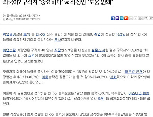 사랑방/외부 글 갈무리30 [한국일보] 외국어 능력 직장인에게 도움 안돼 많은 돈과 시간을 들여 공부한 외국어가 회사 일에 도움이 안 된다는 기사가 났네요. 모두가 영어 공부에 열 올리는 것이 왜 사회적 낭비인지를 잘 말해주는 내용이네요. 한국일보 2013년 7월 2일 기사입니다. 원본 기사 주소 http://news.hankooki.com/lpage/economy/201307/h2013070209223921500.htm 2013. 7. 2. 오마이뉴스] '북침-남침' 시끄럽더니, 이번엔 한자교육 타령?-2013.06.28. 기사 원래 글 보기 http://www.ohmynews.com/NWS_Web/View/at_pg.aspx?CNTN_CD=A0001880222 '북침-남침' 시끄럽더니, 이번엔 한자교육 타령?[주장] 어른들 입장단에 놀아날 아이들이 안타깝다 - 13.06.28 11:10 이무완(nami2001) ============================================================================================== ============================================================================================= 지난 6월 11일 서울신문은 '위기의 한국사 교육'이라는 기획기사에서 고교생 응.. 2013. 7. 1. 서울경제] [로터리] 한자교육보다 더 중요한 것-2013.6.16 기사 원래 글 (주소를 딸깍 누르면 해당 기사 전체를 읽으실 수 있습니다.)http://economy.hankooki.com/lpage/opinion/201306/e2013061616564248320.htm 고영회 성창특허법률사무소 대표변리사2013.06.16 한자교육을 강화해야 한다는 주장이 자주 보인다. 문용린 서울시교육감은 지난달 말 "초등학교부터 한자교육을 확대해 서울시교육청 특색사업으로 추진하겠다"고 밝혔다. 노영민 의원은 4월 '한자교육 활성화를 위한 정책토론회'를 열어 "오랜 세월 우리 사고와 생활방식에 녹아온 한자어를 교육해 국어에 대한 올바른 이해와 어휘력 향상을 도모하고 우리 문화의 정체성을 확립해야 한다"고 목소리를 높였다. 이들은 한자를 공부시켜 우리 문화정체성도 굳히고 창의력을 높.. 2013. 7. 1. 이전 1 2 3 4 다음