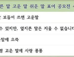 사랑방2583 희색만면하다 [아, 그 말이 그렇구나-107] 성기지 운영위원 희색만면하다 얼굴 가득히 기쁜 표정이 떠오르는 모습을 ‘희색이 만연하다’고 표현할 때가 있는데, 이는 바른 말이 아니다. ‘만연’은 “널리 뻗음” 또는 “번져서 퍼짐”이란 뜻을 지닌 낱말이다. 에는 “식물의 줄기가 널리 뻗는다는 뜻으로, 전염병이나 나쁜 현상이 널리 퍼짐을 비유적으로 이르는 말.”로 풀이하고 있다. 곧 “아카시아 뿌리가 만연하여 다른 나무가 자라지 못한다.”라고 할 때나, “전염병이 만연하다.”라고 표현할 때 쓰는 말이다. 여기에서 볼 수 있듯이, ‘만연’이 동사로 쓰이면, 나쁜 현상이나 전염병이 널리 퍼진다는 것과 같이 부정적인 구실을 하는 것을 알 수 있다. 곧 ‘만연하다’는 부정적인 뜻을 나타낼 때 쓰는 말이다. 그러나 희색은 ‘기뻐.. 2015. 10. 16. 양말과 호주머니 [아, 그 말이 그렇구나-106] 성기지 운영위원 양말과 호주머니 우리말에는 개화기 이후에 서양에서 들어온 물건에 ‘양(洋)-’을 붙여 이름을 지은 것이 많이 있다. 그 말들 가운데는 오랫동안 쓰이다보니까 마치 고유어처럼 느껴지는 것들이 있다. ‘양말’이란 말도 고유어가 아니라 한자말이다. 서양에서 버선과 비슷한 것이 들어오니까 버선을 뜻하는 ‘말’에 ‘양-’ 자를 붙여서 ‘양말’이라고 한 것이다. 물을 긷는 데 쓰는 질그릇 ‘동이’에 ‘양-’ 자를 붙여 ‘양동이’라 하였고, 서양에서 받아들인 잿물이라는 뜻으로 ‘양잿물’이라는 낱말을 만들어 써 왔다. 이 밖에도 ‘양배추, 양변기, 양송이, 양은냄비, 양재기, 양철, 양파’ 등 매우 많은 말들이 있다. 서양에서 온 물건에 ‘양-’을 붙인 것처럼, 중국에서.. 2015. 10. 16. 외국어 간판 '불법', 단속은 '쉬쉬' 2015.10.09.교통방송(tbs) 외국어 간판 '불법', 단속은 '쉬쉬' 2015.10.09.교통방송(tbs).류밀희 기자 graven56@tbstv.or.kr - 이건범 한글문화연대 대표 출연 2015. 10. 12. 제7회 바른 말 쉬운 말 표어공모전 선정 발표 제7회 바른 말 고운 말 쉬운 말 표어공모전 수상작을 아래와 같이 발표합니다. 수상한 네 분께 진심으로 축하드립니다. 그리고 아쉽게 수상은 하지 못했지만 표어공모전에 참여해주신 많은 분께도 고마운 마음을 전합니다. ■ 심사평 7회를 맞은 올해 '바른말 고운말 쉬운말 표어 공모전'은 지난해의 2배가 넘는 900여 명이 응모해 뜨거운 경쟁을 벌였다. 공모전 취지에 걸맞게 아름다운 말, 고운 말, 쉬운 말이 들어가는 표어가 많았다. 누리소통방(SNS)이나 문자 등에서 많이 쓰이는 신조어와 관련한 표어가 늘었다는 것도 특징이다. 그 가운데 최한경(경북예술고2) 양의 '다듬어 쓰면 쉬운말 보듬어 쓰면 고운말'이 문화체육관광부 장관 상인 으뜸상을 차지했다. 언어를 정제해 사용해야 한다는 의미를 담은 '다듬다' '보.. 2015. 10. 9. 제1회 국어소통능력시험 응시료 입금자 "박재진"님을 찾습니다. 제1회 국어소통능력시험 응시료를 "박재진"이라는 이름으로 입금한 분을 찾습니다. 해당하는 분은 070-7807-5084 로 전화해주시기 바랍니다. 제1회 국어소통능력시험 응시자 명단에 "박재진"과 같은 이름의 응시자가 없어서 시험 응시 접수처리를 하지못하고 있습니다. 연락이 안되면 시험 응시 접수가 되지 않고 수험표를 받지 못해 시험을 볼 수 없으니 꼭 070-7807-5084 로 전화해주시기 바랍니다. 2015. 10. 6. 희극인에서 ‘우리말 지킴이’로 변신한 한글문화연대 공동 대표 정재환씨/농민신문2015.10.05. 농민신문(2015년 10월 5일) http://www.nongmin.com/article/ar_detail.htm?ar_id=256044&subMenu=articletotal 2015. 10. 6. 대한민국 공무원 김혜선과 한글날-이건범 한글문화연대 대표/서울신문2015.10.06. 대한민국 공무원 김혜선과 한글날 이건범 한글문화연대 대표 모처럼 단맛의 휴식이 찾아온 지난달 5일 토요일 아침 오랜만에 문화체육관광부 김혜선 과장에게서 문자를 받았다. 그가 국어정책과를 떠난 직후부터 1년 가까이 교육부의 초등 교과서 한자병기 방침과 싸우느라 난 그에게 문자 한 번 보낼 틈이 없었다. 때마침 전날 공청회에서 이 방침을 유보하겠다는 교육부의 공식 답변이 나온 터라 그가 축하 문자를 보냈나 싶었다. 하지만 나의 짐작과 달리 부고였다. 그런데 좀 이상했다. 누가 세상을 떠났는지 얼른 파악하기 어려운 알림이었다. 갑자기 몸이 오싹해졌다. 허둥지둥 여기저기 전화를 돌려 확인해 보니 불길한 느낌대로 그가 돌연 암으로 세상을 떠난 것이었다. 이제 겨우 마흔두엇의 나이인데. 김혜선. 그가 국어정책과장으.. 2015. 10. 6. 가장비와 거위영장 [아, 그 말이 그렇구나-105] 성기지 운영위원 가장비와 거위영장 살아가면서 다른 사람으로부터 여러 가지 상처를 받기도 하고, 때로는 미워하는 마음을 갖기도 한다. 요즘엔 사람이 미울 땐 욕이나 험담을 하는 게 보통이지만, 우리 선조들은 이럴 때에 상대방에게 ‘놀림말’을 함으로써 마음을 풀었다. 놀림말은 상대방의 약점을 잡아 놀리거나 흉을 볼 때 쓰는 말인데, 비속어나 욕설과는 달리 남을 저주하는 뜻이 없고 말 자체가 비속하지도 않으며, 언어 유희적인 성격이 더 강하다. 가령, 생김새나 행동이 거친 사람을 ‘가장비’(; 장비를 