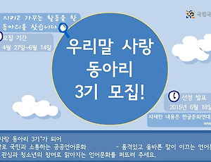 사랑방2583 한참 되었어도 아직 한창 [아, 그 말이 그렇구나-84] 성기지 운영위원 한참 되었어도 아직 한창 지난 4월 20일은 절기상으로 ‘곡우’였다. 이맘때면 농가에서는 못자리를 만들기 위해 볍씨를 담그게 된다. 곡우를 지나면서부터 본격적인 농사일이 시작된다고 할 수 있다. 그래서 곡우에 가뭄이 들면 그해 농사에 큰 어려움을 주기 때문에, 절기 이름도 ‘곡식을 윤택하게 하는 비’란 뜻으로 ‘곡우’라고 한 것이다. 순 우리말로 이 날을 ‘단비’라고 부른다. 마침 곡우 무렵에 전국적으로 단비가 내렸다. 아직 일부 지역에서는 벚꽃이 한창이다. 그런데 이 ‘한창’이라는 말이 가끔 엉뚱한 곳에 쓰일 때가 있다. “벚꽃 핀 지도 한창 되었는데, 아직도 겨울옷을 입고 있니?”처럼 표현할 때에도 더러 ‘한창’이란 말을 쓰는데, 이것은 잘못 쓰고 있는.. 2015. 4. 23. 한라일보, "초등학교 한자 병기 논란 재점화"를 읽고-박지현 대학생기자단2기 ①기사제목: 초등학교 한자 병기 논란 재점화 ②언론사: 한라일보 ③날짜: 2015.03.23. ④기자 이름: 오은지 ⑤기자 전자우편 주소: ejoh@ihalla.com ⑥http://www.ihalla.com/read.php3?aid=1427036400494076044 교육부가 2018년부터 초등학교 교과서를 한자와 함께 적겠다는 방침을 검토 중이다. 이에 관해 우리말과 글의 60% 이상이 한자어인 상황에서 학생들의 언어 이해력을 높이고 언어생활을 풍족하게 하는 정책이라고 주장하는 사람들도 있다. 그러나 다수의 교사들은 초등학생의 선행학습이 더욱 가속화될 것이라고 주장한다. 이런 여러 의견이 나오는 상황에서 나는 초등학교 한자 병기를 반대하는 입장이다. 기본적으로 한자를 아는 사람은 한자를 한글과 함께 .. 2015. 4. 22. 매일경제, "여기는 한국이라고!"를 읽고-고해진 대학생기자단2기 ①기사제목: 여기는 한국이라고! ②언론사: 매일경제 ③날짜: 2015년 3월 2일 ④글쓴이: 고영회 대한변리사회 회장 ⑤ http://news.mk.co.kr/column/view.php?year=2015&no=200095 사실 이 기사를 처음 읽었을 땐, 글쓴이가 사소한 문제에 너무 예민하게 반응하는 것 같다고 생각했다. 기사에서 언급된 국수주의까진 아니더라도 다소 민족주의적인 태도가 아닌가 하는 생각이 들었다. 많은 나라가 더불어 살아가는 세계화 시대에 발맞추지 못하고 뒤떨어지는 현명하지 못한 판단말이다. 그런데 기사를 읽고 난 뒤 좀 더 관심있게 주위를 둘러보니 내가 국민으로 살아가고 있는 이곳, 대한민국은 고영회 회장의 말과 별반 다르지 않았다. 모국어인 한글을 찾는 것보다 영어, 중국어 등의 외.. 2015. 4. 22. 머니투데이, "전문용어 많은 '특허소송용어' 쉬운말로 바꾼다"를 읽고-김태희 대학생기자단2기 ①기사제목 : 전문용어 많은 '특허소송용어' 쉬운말로 바꾼다 ③언론사 : 머니투데이 ③날짜 : 2015.02.17 ④기자 이름 : 김미애 ⑤http://www.mt.co.kr/view/mtview.php?type=1&no=2015021714354341869&outlink=1 공문서에 쉬운 단어를 쓰자는 논쟁은 몇 년 전부터 계속되고 있다. 어려운 한자어나 일본식 표현, 흔히 사용하지 않는 생소한 용어와 어색한 외래어 표기, 맞춤법에 어긋나는 표현 등 공문서에서 고쳐야 할 부분은 속속들이 발견되고 있다. 그러나 아직도 제대로 이루어지지 않는 것이 현실이다. 그런데 최근 전문용어가 많은 ‘특허소송용어’가 쉬운 말로 바뀐다고 한다. 대법원은 용어순화집 발간과 더불어 조만간 판결문 개선 사례집 ‘알기 쉽게 고쳐.. 2015. 4. 22. [알림]우리말 사랑 동아리 3기 모집(~6/14*모집기간연장) 한글문화연대는 '우리말 사랑 동아리 3기'를 모집합니다. “우리말 사랑 동아리 3기”가 되어 - 쉬운 말로 국민과 소통하는 공공언어문화 - 품격있고 올바른 말이 이끄는 언어문화 - 어른의 관심과 청소년의 참여로 맑아지는 언어문화를 퍼뜨려 주세요. 신청 기간 2015년 4월 27일(월)~6월 14일(일) 신청 자격 우리말과 한글을 주제로 ‘언어문화 개선’ 활동을 하고자 하는 중·고등학생, 대학생, 일반인 동아리 ※ 새롭게 활동하고자 하는 사람도 동아리를 만들어 지원할 수 있습니다. ※ 동아리 최소 인원은 3명입니다. ※ 신청할 수 없는 동아리 - 개인(강사), 지역, 단체, 시설의 이익 추구, 일회성 행사 또는 교육, 여행 등을 목적으로 하는 동아리 - 영리나 정치적, 종교적 목적을 지닌 동아리 - 다른 .. 2015. 4. 21. 한글을 지키기 위한 작은 첫걸음-김슬옹 교수에게 배우다 한글을 지키기 위한 작은 첫걸음-김슬옹 교수에게 배우다 우리말 가꿈이 김다정 기자 전 세계의 7천 7백만 명의 사람들이 한국어를 사용하고 있고 그 가치와 우수성을 세계적으로 인정받고 있다. 그러나 이를 사용하는 우리의 모습은 어떤가? 영어우월주의에 빠져 맹목적으로 영어를 찬양하고 있으며 젊은 세대를 중심으로 새로운 줄임말, 합성어 등이 생기면서 심각한 언어파괴가 일어나고 있다. 우리의 국어사용실태를 객관적인 관점에서 바라보며 그 심각성을 깨닫고 이런 문제를 해결하기 위한 방안에 대해 조언을 구하기위해 한글학자이자 독서운동가로 활동 중인 김슬옹 교수를 만나보았다. “우리나라의 지나친 영어교육과 사용은 중독과 마니아의 차이다.” 지난 달 17일, 한글학자 김슬옹 교수를 만나 현재