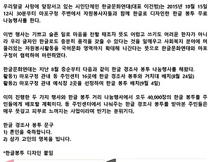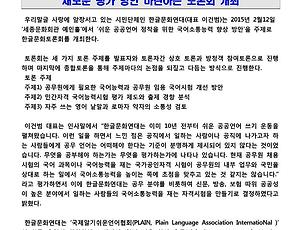 자료실197 [보도자료]한글 경조사 봉투 무료 나눔 자원봉사활동 2015. 10. 14. [보도자료]대한민국 행정부 보도자료 하나마다 외국 글자 표기 4회씩 나와 2015. 10. 7. [보도자료]한글날 맞아 우리말 사랑꾼, 해침꾼 뽑아 2015. 10. 7. [보도자료]세종대왕 휴가비, 페이스북 달구다 2015. 7. 23. [영상]초등교과서 한자 병기에 대한 국회 상임위 질의-도종환 국회의원2015.02.11. [영상]초등교과서 한자 병기에 대한 국회 삼임위 질의-도종환 국회의원2015.02.11. 2015. 2. 16. [사진]제19회 한글문화토론회-쉬운 공공언어 정착을 위한 국어소통능력향상 방안 2015. 2. 16. [보도자료]공무원에게 필요한 국어소통능력, 새로운 평가 방안 마련하는 토론회 개최(02/12) 2015. 2. 11. 우리말나들이 7편 알 수 없는 정부의 홍보자료 2015. 2. 10. 우리말나들이 6편 행정기관의 잘못된 공공언어 사용 2015. 2. 10. 이전 1 ··· 16 17 18 19 20 21 22 다음