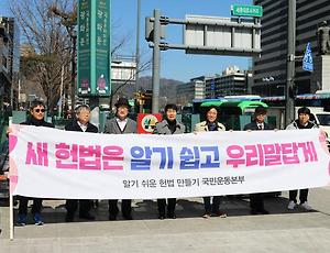 활동/공공언어 바로잡기 활동82 알기 쉬운 헌법 개정안2- 반드시 다듬어야 할 조문 모음 반드시 다듬어야 할 「1987 헌법」 조문 모음알기 쉬운 헌법 만들기 국민운동본부현행기준등급가다듬기005-① 대한민국은 국제평화의 유지에 노력하고 침략적 전쟁을 부인한다. 문법성명확성㉮ 005-① 대한민국은 국제 평화를 지키는 데에 힘쓰며 침략 전쟁을 거부한다. 005-② 국군은 국가의 안전보장과 국토방위의 신성한 의무를 수행함을 사명으로 하며, 그 정치적 중립성은 준수된다.명확성쉬움성간결성㉮005-② 국군의 사명은 국가의 안전을 보장하고 국토를 방위하는 것이다.005-③ 국군은 정치에서 중립을 지켜야 한다. 007-① 공무원은 국민전체에 대한 봉사자이며, 국민에 대하여 책임을 진다.문법성㉮ 007-① 공무원은 전체 국민에게 봉사하며, 국민에 대하여 책임을 진다.008-① 정당의 설립은 자유이며, 복수정.. 2018. 3. 20. 알기 쉬운 헌법 개정안1-말‧글 가다듬기의 방향 붙임1. 「1987 헌법」 말‧글 가다듬기의 방향알기 쉬운 헌법 만들기 국민운동본부 헌법은 나라의 최고 법이며, 나라의 주인은 국민입니다. 그러므로 헌법은 온 국민이 알기 쉽고, 국민에게 친근하게 짜야 합니다. 그리고, 우리 대한민국 헌법의 주인은 바로 우리 대한민국 국민이며, 우리들의 공용어는 한국어입니다. 그러므로 대한민국 헌법의 말과 글은 되도록이면 한국어답게 부려 써야 하며, 한국어의 건강한 발전에 도움이 되게끔 가다듬어야 합니다. 우리는 이와 같은 생각에 터하여 우리들의 지혜를 모아 헌법 조문을 가다듬어 보았으며, 그 결과를 이 자료에 담았습니다. 가다듬은 대상은 대한민국의 현행 헌법인 「1987 헌법」 130개 조‧항 모두이며, 가다듬기의 방향은 대체로 다음과 같습니다. 가다듬은 결과는 그 전.. 2018. 3. 20. 알기 쉬운 헌법 만들기 국민운동본부- 광화문 거리 홍보 3월 16일(금) 3월 19일(목) 는 알기 쉬운 헌법 개정안을 앞두고 거리 홍보 계획을 세웠습니다. 3월 16일(금)과 3월 19일(월) 점심 시간을 이용하여 광화문 네거리에서 시민을 대상으로 홍보 활동을 하였습니다. 3월 16일(금)은 햇볕은 따스했지만 때때로 부는 바람에 현수막을 들고 있기가 버거웠지만, 그런 상황에서도 500장의 홍보물을 뿌렸습니다. 3월 19일(월)에도 오전 11시 30분부터 1시간 동안 거리 홍보 활동을 하였습니다. 2018. 3. 19. 알기 쉬운 헌법 만들기 국민운동본부 - 설문 조사 결과 발표 1. '알기 쉬운 헌법 개정안' 제출 는 춘천교대 리의도 명예교수가 대표 정리하여 마련한 을 정부와 국회에 제출하였습니다. 지난 2월 28일 대통령 직속 국민헌법자문 특위 김종철 부위원장을 만나 꼭 바꿔야 할 것과 그렇지 않더라도 적극 권장하는 내용을 3단계 정도로 나누어서 실무진들이 참고할 때 효율적이라는 도움말을 얻었습니다. '알기 쉽게, 친근하게, 우리말 규범에 맞게, 문법에 맞게, 명확하게, 간결하게, 사회 변화와 상황에 맞게, 띄어쓰기법에 맞게'라는 여덟 가지 기준으로 헌법 130개 조의 319개 문장에 등급을 매겨 보완하였습니다. 이렇게 마련한 개정안을 3월 6일 대통령 직속 국민헌법자문특별위원회 정해구 위원장에게, 3월 7일 국회 헌법개정 및 정치개혁 특위 김재경 위원장에게 전하였고, 여야 .. 2018. 3. 14. [국민운동본부] 헌법 개정안 제출 지난 3월 7일(수), '알기 쉬운 헌법 만들기 국민운동부' 대표단은 헌법을 알기 쉽고 우리말답게 다듬자는 국민운동본부의 뜻을 전달하기 위해 국회 '헌법개정 및 정치개혁 특별위원회' 김재경 위원장을 만났다. 김재경 위원장과의 만남 뒤에 특위의 각당 간사(더불어민주당 이인영 의원, 자유한국당 주광덕 의원, 바른미래당 김관영 의원)와 위원(정의당 심상정 의원), 민주평화당 김경진 의원실에 국민운동본부의 헌법 개정안 문서를 전달하였다. 2018. 3. 8. [설문 조사]우리 헌법, 국어 점수는 몇 점? 안녕하세요? 한글문화연대입니다. 헌법 개정안 마련을 위한 설문 조사를 벌이고 있으니 참여 많이 해주시기 바랍니다. 설문 뒤 아래 주소를 주위에 퍼트려주세요. ** 설문 참여 하기 ** 2018. 3. 6. 국민 청원:: ‘알기 쉬운 헌법’ 만들어 주세요~ 헌법을 알기 쉽고 우리말답게 바꾸어 주십시오. 저는 의 공동대표인 한글문화연대 이건범입니다. 우리 국민운동본부는 한글학회와 한글문화연대 등 국어단체, 흥사단과 한국와이엠시에이(YMCA)전국연맹 등 시민단체, 전국교직원노동조합과 참교육을위한전국학부모회 등 교육학부모단체를 비롯한 41개 단체가 모여 2018년 1월 17일에 출범하였습니다. 헌법은 대한민국 국민의 삶을 뿌리에서 좌우합니다. 따라서 국민의 행복 추구권과 알 권리, 평등권을 보장하기 위해 헌법은 우리 국민이라면 누구나 쉽게 이해할 수 있도록 알기 쉬워야 하며, 전통문화의 계승 발전과 민족문화의 창달에 애써야 하는 국가의 의무에 비추어 우리말답게 써야 합니다. 알기 쉬운 헌법 만들기 국민운동은 바로 이와 같은 헌법 정신에 바탕을 두고 있습니다. 1.. 2018. 1. 17. [안전 용어] 안전 용어는 쉬운 말로(영상) 어떤 말이 더 이해하기 쉬울까요? 어떤 말이 국민을 더 안전하게 할까요? 안전을 위협받는 긴급한 상