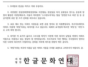 [공문] ‘싱크홀’ 대신 ‘땅꺼짐’으로 보도해 주십시오. 공문 보낸 곳: 문화방송, 서울방송, 연합뉴스, 와이티엔, 제이티비씨, 한국방송, 동아일보, 노컷뉴스, 중앙일보, 세계일보, 국민일보, 매일일보, 서울신문, 조선일보, 경향신문, 한겨레신문 보낸 내용: 공공 매체인 언론은 국민에게 소식을 전할 때, 모든 국민이 누구나 알아들을 수 있는 쉬운 우리말을 사용해 보도해야 합니다. 또한, 외국어 때문에 소외당하는 국민의 인권을 존중할 필요가 있습니다. 이 점을 잘 살펴 앞으로는 ‘싱크홀’이라는 말을 쉬운 우리말인 ‘땅꺼짐’으로 바꿔 보도해 주십시오. *싱크홀: 땅꺼짐