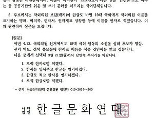 활동/공공언어 바로잡기 활동(공문)376 [공문]송도 다리 이름을 영어로 짓는 황당한 행정을 당장 멈추십시오 관련기사: '죄다 영어' 송도국제도시 교량 이름 바꾼다(5.21. 연합뉴스) 2016. 5. 24. [공문]‘좌회전 감응’ 신호등 보조표지 이름을 쉬운 말로 바꿔주십시오. 2016. 4. 8. [공문] 한국형 '마더센터'의 이름은 우리말로 지어야 마땅합니다. 2016. 4. 7. [공문]국회의원 선거 홍보물 등에 한자로 이름을 적는 것에 대한 질문 2016. 3. 14. [공문]88고속도로의 새 이름으로 ‘달빛 고속도로’를 지지합니다. 2015. 12. 10. [공문]새로운 서울 브랜드의 국내 사용에 대한 제안 2015. 10. 29. [공문]서울시에서 발표한 새 브랜드 사업계획에 대한 질의 2015. 10. 6. 이전 1 ··· 39 40 41 42 다음