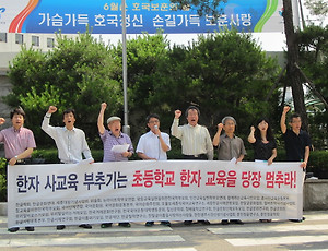 활동1455 우리말 가꿈이 4기를 마치며 우리말 가꿈이는 우리말과 한글을 지키고 널리 퍼트리자는 생각으로 모인 대학생 동아리입니다. 우리말 가꿈이 4기는 서울과 경기 20여 개 대학과 부산, 대구, 대전, 광주의 대학생들입니다. 한글문화연대는 이 대학생들이 펼치는 우리말 가꿈이 활동을 살피고 지원하는 역할을 하고 있습니다. 7월 6일(토) 서울시 후생동 강당에서 우리말 가꿈이 4기 수료식을 치렀습니다. 이번 4기 활동은 2013년 2월 15일부터 7월 6일까지 5개월 기간 이었습니다. 블로그 활동, 모둠 활동, 월별 모임을 통해 우리말과 한글을 널리 퍼트리는 특별한 시간이었습니다. 우리말 가꿈이 4기 활동을 무사히 마친 가꿈이는 198명입니다. 수료 기준 점수와 활동 점수를 매겨 개인 활동 우수자와 우수 모둠을 뽑았고 시상하였습니다. 개인 시상.. 2013. 7. 8. 조선일보) [발언대] 한자 이전에 국어 낱말 교육부터 살피자2013.07.04. [발언대] 漢字 이전에 국어 낱말 교육부터 살피자 이건범 한글문화연대 대표 http://news.chosun.com/site/data/html_dir/2013/07/03/2013070303838.html 문용린 서울시교육감이 초등학교 한자 교육 강화를 들고 나왔다. 문 교육감은 예전부터 한자 혼용에 강하게 동조해왔다. 한글로만 적는 신문과 인터넷에서 아무런 혼란도 겪지 않는 일반인들로서는 받아들이기 어려운 주장이라 걱정이다. 초등학교에서 한자 교육 강화 정책을 펴는 순간 두 가지 결과는 피하기 어려울 것이다. 하나는 암기 평가 위주의 공부 부담을 얹어 아이들을 더 지치게 만들고, 다른 하나는 영어 교육 사례에서 보듯 학교에서 한자를 강조하는 순간 사교육이 번성한다는 점이다. 한자 교육 요구는 크게 두 종.. 2013. 7. 4. 경향신문) [문화와 삶]초등학생 좀 그만 괴롭히자2013.07.04 [문화와 삶]초등학생 좀 그만 괴롭히자/ 경향신문.2013.07.04.목 이건범(작가·한글문화연대 대표) http://news.khan.co.kr/kh_news/khan_art_view.html?artid=201307032144155&code=990100 문용린 서울시교육감이 초등학교 한자 교육 강화를 특색사업으로 벌이겠단다. 처음엔 창의적 체험활동 시간에 한자 수업을 강제로 배정하겠다더니 이젠 한발 물러섰다. 재능기부 강사를 모아 방과후에 원하는 저소득층 학생들에게 교과서에 나오는 한자어 낱말 뜻을 이해시켜줄 목적으로 학교 자율에 맡겨 시행하겠노라고 한다. 이렇게 훌륭한 명분을 내건 사업에 욕을 해대면 나만 나쁜 놈처럼 보이리라. 그런데 사정을 알고 보면 그리 간단하지 않다. 문용린 교육감은 예전부터 .. 2013. 7. 4. 서울시 교육청을 꾸짖다 구호 하나 외치고 글을 시작해야 겠습니다. 서울시 교육청은 초등 한자 교육 강화 계획을 당장 멈춰라!! 7월3일 오전 10시 서대문 강북삼성병원 뒤에 있는 서울시교육청 정문 앞에서 문용린 서울시 교육감의 초등학교 한자 교육 강화 방침을 당장 거두라는 기자회견을 열었습니다. 기자회견은 한글문화연대, 학글학회 등의 한글 단체와 뉴라이트 학부모연합, 참교육을위한전국학부회 등의 학부모 단체가 함께 열었습니다. 9시 40분. 기자회견 20분을 남겨두고 조금 일찍 서울시 교육청 정문에 도착했습니다. 종로경찰서, 교육청 직원 분이 먼저 나와 저희를 반갑게(?) 맞아주셨습니다. 소리통(앰프)이나 알림막 등의 기자회견 준비물을 차에 싣고 왔기에 주차할 곳을 찾다 교육청 직원분께 물으니 기자회견 하러온 차량은 주차할 수 .. 2013. 7. 4. [7/3 초등학교 한자 교육 반대 기자회견] 언론보도 모음 오늘 7월 3일 서울시 교육청 앞에서 열었던 기자회견 소식이 실린 기사들입니다. [경향신문] 서울시교육청 한자교육 강화에 한글·학부모단체들 반발 http://news.khan.co.kr/kh_news/khan_art_view.html?artid=201307031047281&code=940401 [민중의 소리] “한자교육 강화 주장, 문용린 교육감 고집일 뿐” 서울교육청, 2학기부터 초등·중학교 한자교육 강화 방침...한글·학부모단체 반발 거세 http://www.vop.co.kr/A00000652055.html [아시아경제] 학부모단체 '한자교육' 반대..한 목소리 http://www.asiae.co.kr/news/view.htm?sec=it99&idxno=2013070307030944629 [뉴스1] .. 2013. 7. 3. [7/3 기자회견] 서울시교육청 초등학교 한자 교육 반대 서울시교육청은 문용린 교육감의 강한 의지로 한자교육추진단을 만들어 초등학교 한자 교육을 강화하려고 합니다. 문용린 교육감과 시교육청이 추진하는 초등학교 한자 교육 강화 계획은 한자 교육을 국어 교육으로 탈바꿈하여 초등 학교 한자 교육을 강화하여 결국에는 사교육만 키우려는 속셈입니다. 이를 규탄하는 기자회견을 엽니다. ■ 사교육 부추기는 서울시 교육청의 초등학교 한자 교육 반대 기자회견 1. 때: 2013년 7월 3일(수) 오전 10시2. 곳: 서울시 교육청 정문 앞3. 여는 곳: 한글학회, 한글문화연대, 세종대왕기념사업회, 외솔회 등 한글 단체와 뉴라이트학부모연합, 평등교육실현을위한전국학부모회, 인간교육실현학부모연대, 함께하는교육시민모임, 흥사단교육운동본부, 참교육을위한전국학부모회 등 학부모 단체.4. .. 2013. 7. 1. 국회 300명 의원 사무실을 모두 방문하다. 오늘 사무국의 정인환 운영 위원이 국회에 다녀왔습니다. 국회의원 300명 사무실에 들러 이번에 작은 책자로 만든《교과서 한자 혼용과 초등 한