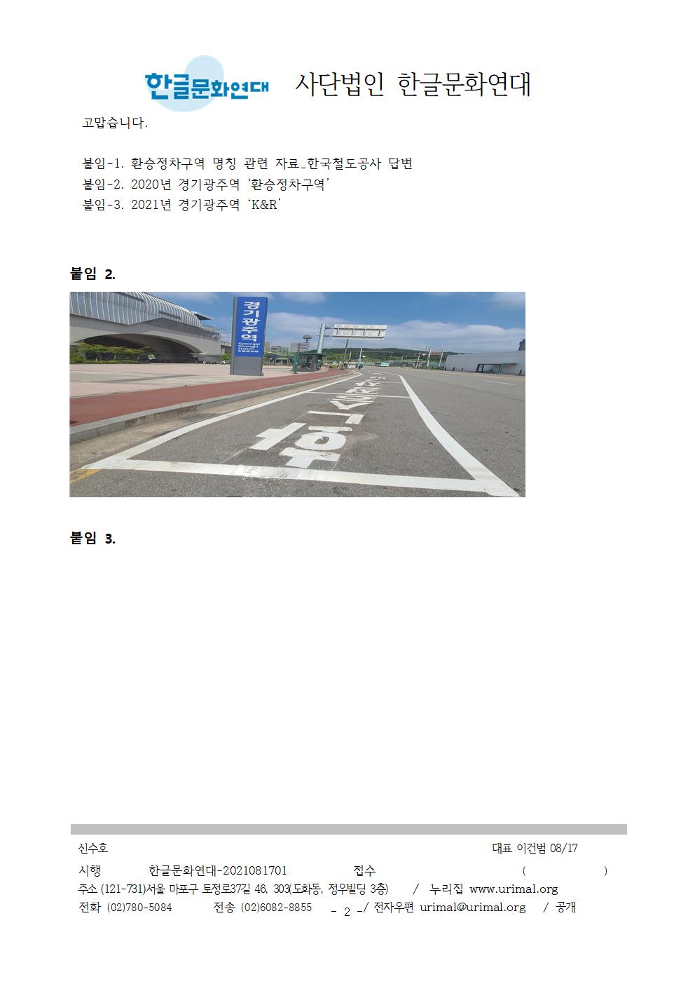 붙임-1. 환승정차구역 명칭 관련 자료_한국철도공사 답변