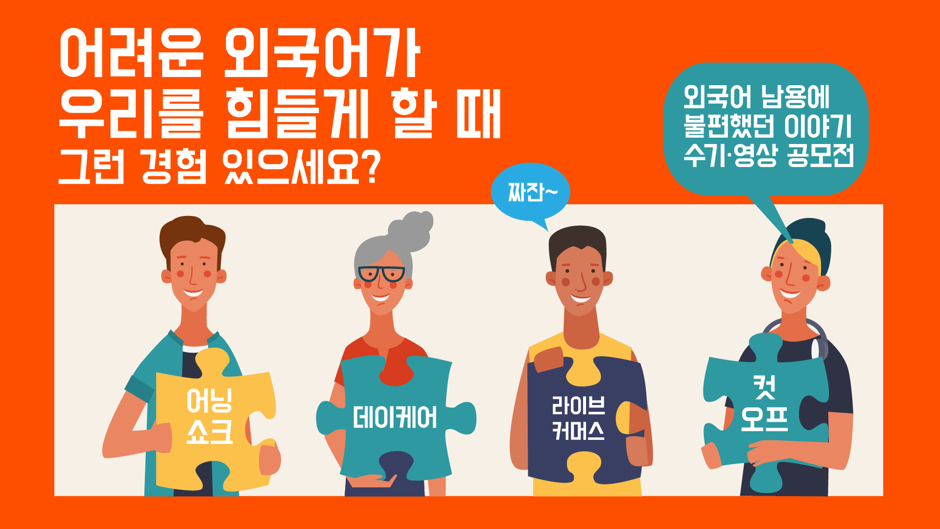 '정부, 공공기관, 언론의 외국어 남용에 불편했던 이야기 수기·영상 공모전' 소식을 공유합니다!