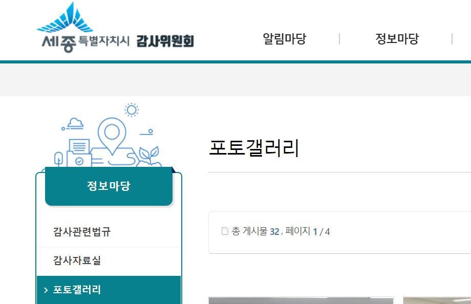3. 세종특별자치시 누리집에 쓰여 있는 ‘포토갤러리’라는 외국어를 우리말로 바꿔 써 주십시오. 5월 21일 ‘제천시’, 7월 2일 ‘원주시’, 8월 2일 ‘용인시의회’, 9월 15일 ‘경기도’, 9월 16일 ‘한국지역정보개발원’, 9월 30일 ‘울릉군’에서 한글문화연대의 건의를 수용해 ‘사진게시판’, ‘사진모음’, ‘사진마당’, ‘사진첩’ 등으로 바꾼 사례가 있습니다.