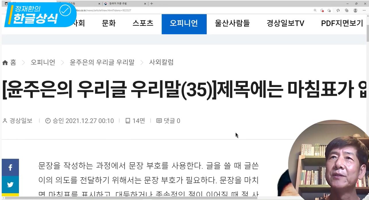 2022년 1월 9일 정재환의 한글 상식